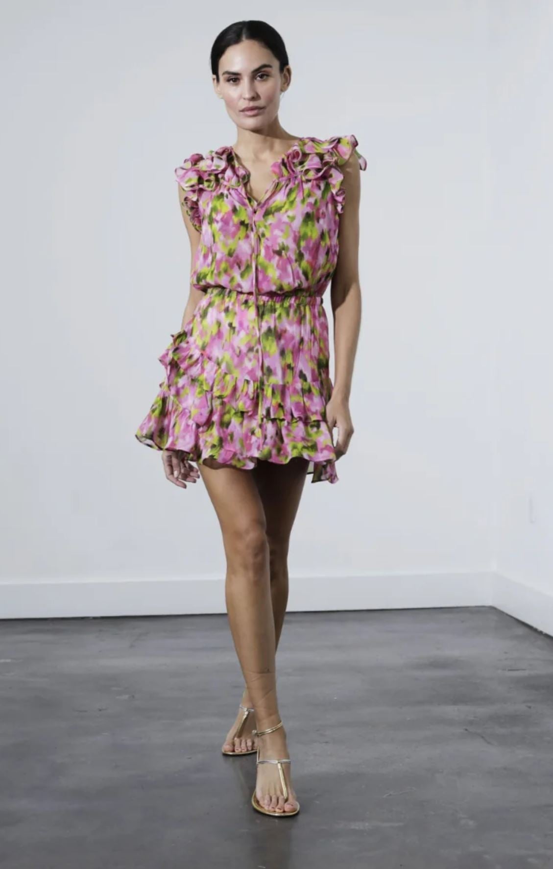 The Elliot Print Mini Dress! It is 100% Viscose, made from high-quality materials, this dress is not only stylish but also comfortable, making it perfect for any occasion. Its style flower print creates a beautiful, dynamic look that will turn heads. It is Dry Clean Only!