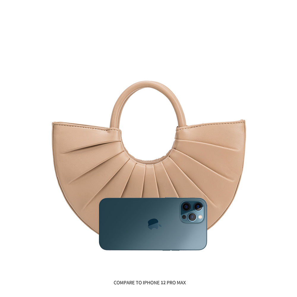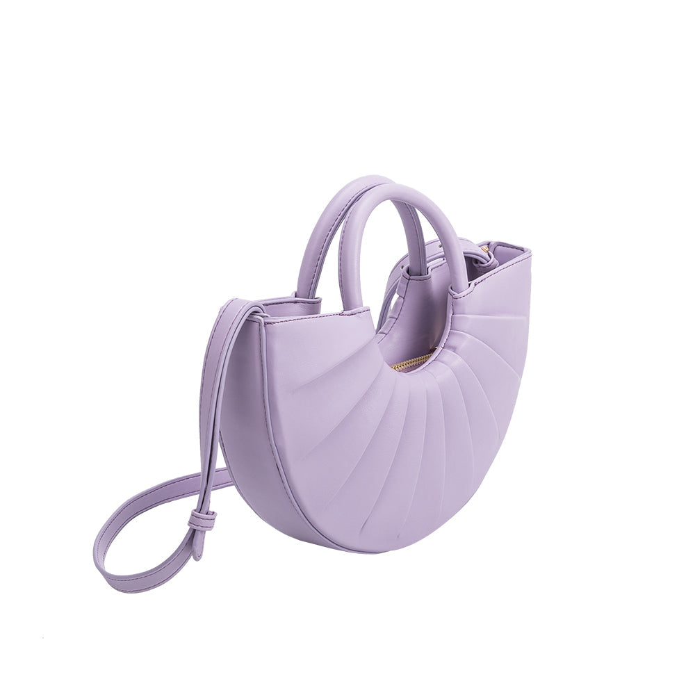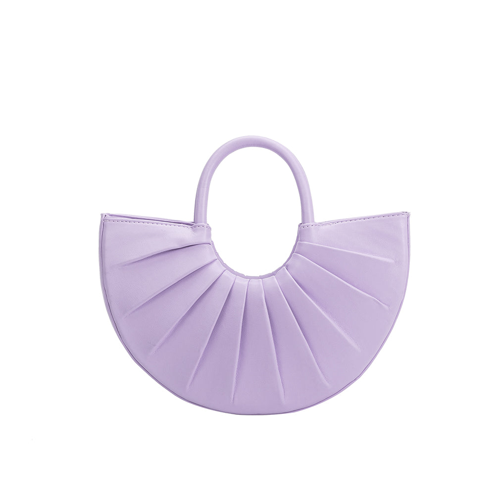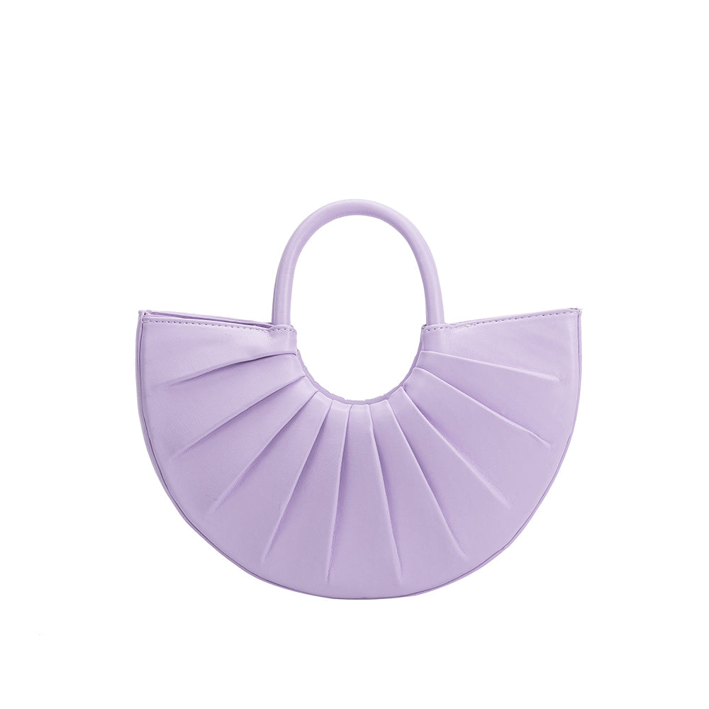 With a semi-circle shape and pleated details, the Karlie top handle bag will add a touch of fun and cool appeal to any outfit. Carry from the top handle or attach the strap to wear it as a crossbody for a hands-free option. This compact style features a zipper closure and interior slot pocket.
