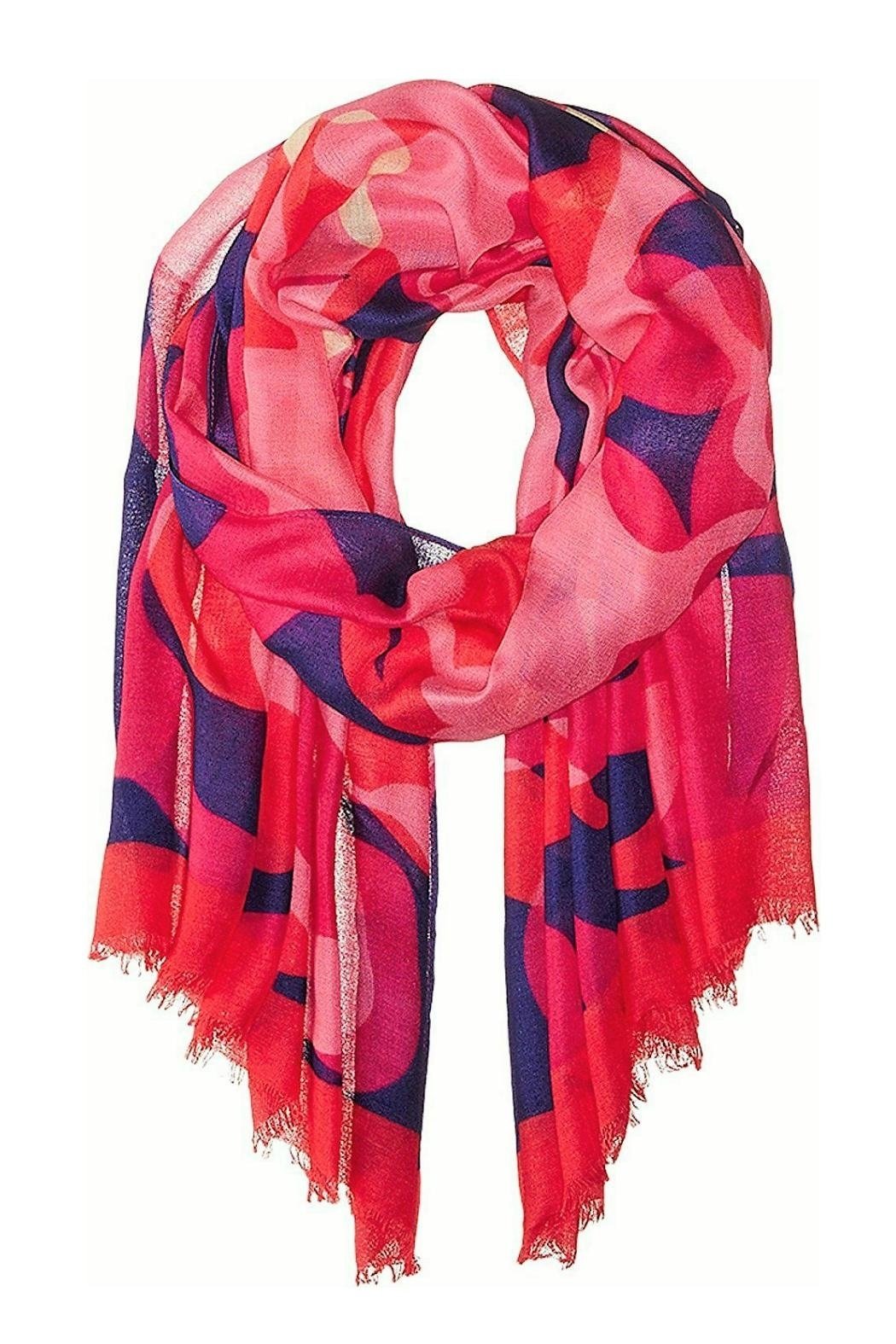 Meet the Vera Bradley Soft Fringe Scarf in the Katalina Pink pattern. It features shades of hot pink and deep purple. Keep one handy for unexpected chilly days (or meeting rooms) or when you want to adopt the mystery of an old-time movie star! 100% rayon for a softer hand feel. Dry clean or hand wash and dry flat. Find other Vera Bradley scarves and accessories on the "Mimi's Gift Gallery" boutique page. ------- Dimensions are 72 ½" wide x 26 ¼" high.
