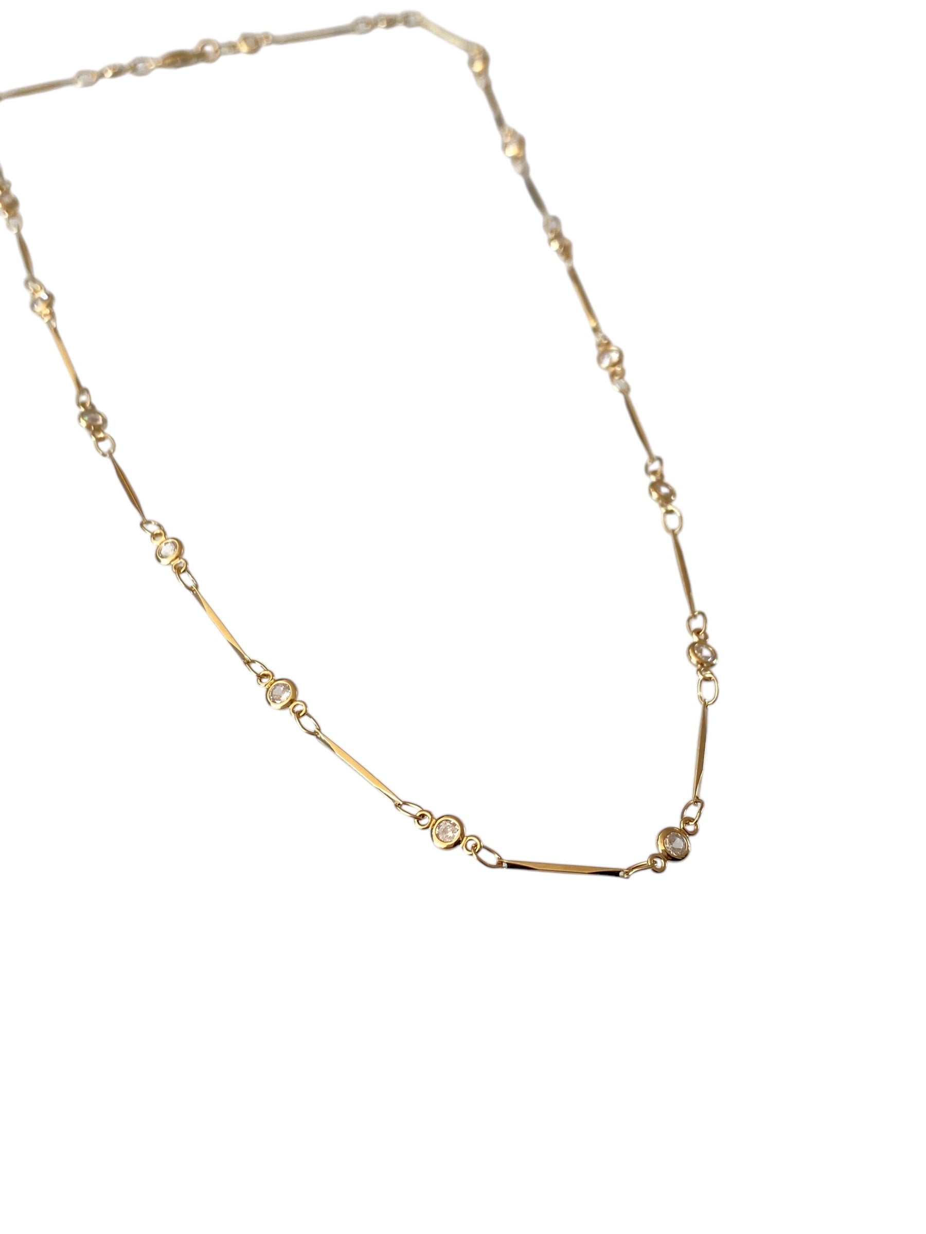 The Kayla Necklace is the perfect blend of simplicity and sophistication. Crafted from 18K gold-filled material and accented with CZ stones, this 18-inch piece offers a clean, polished look that never goes out of style. Designed for everyday wear, it’s a reliable staple that complements any outfit with understated elegance.