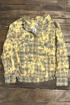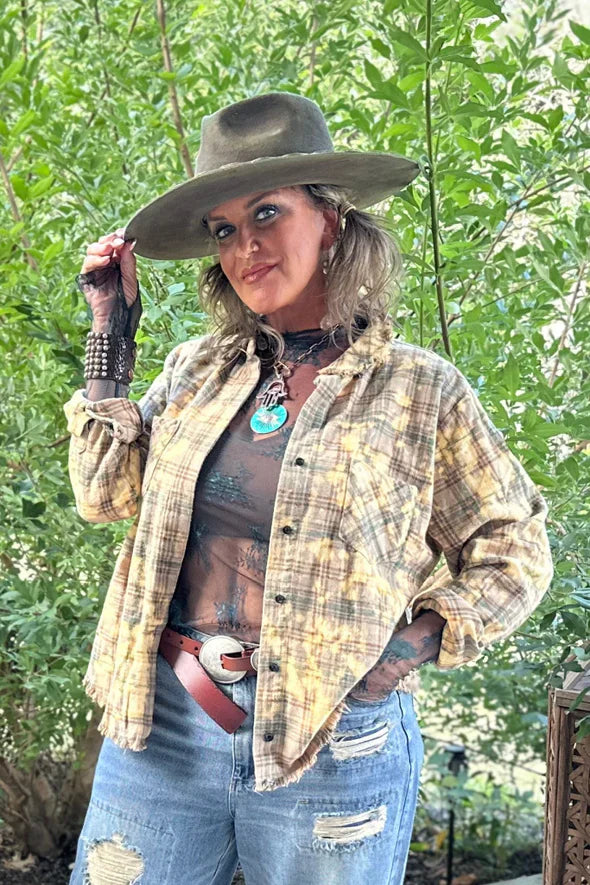 Unleash your inner gypsy with the Keliah Afternoon Breeze Flannel Top. Made from prewashed flannel, it's so soft and comfortable you'll never want to take it off. With a collared, button-down style and front breast pockets, it's both stylish and practical. Plus, each top is unique with a bleaching process and a Jaded Gypsy patch on the back. Get ready to rock this one-of-a-kind piece!