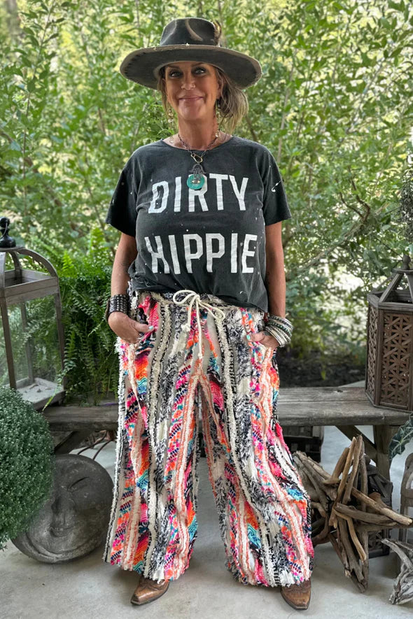 Be PROUD to be a Dirty Hippie, 'cuz you haven't lived if you haven't been a hippie at some time in your life! This t-shirt is distressed and ready for your wardrobe! Crafted with 100% prewashed cotton for a relaxed fit, this top features a great graphic, top of hip modern length, and all the comfort you can imagine! Also pairs well with your old 501 jeans!