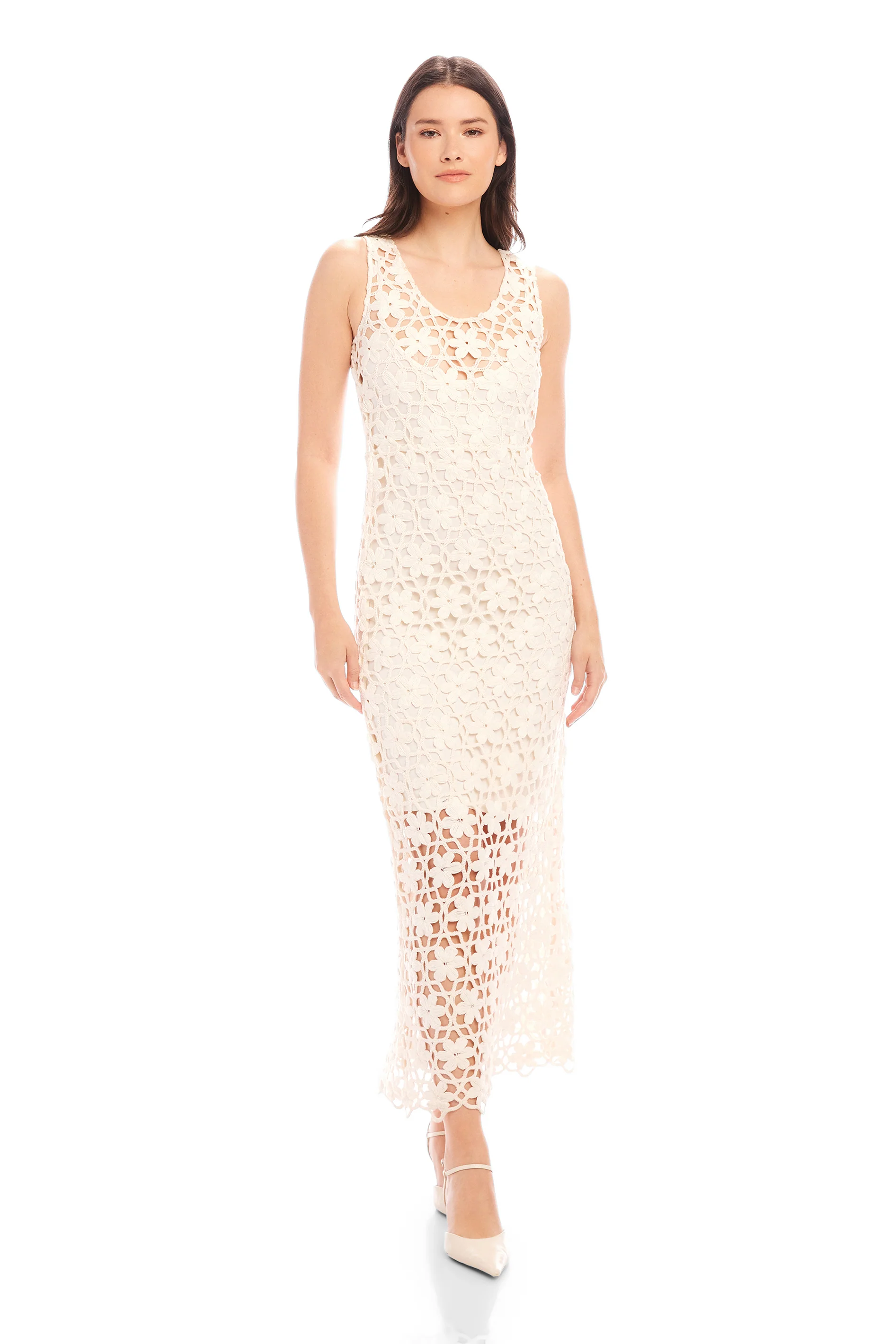 Discover the elegance and sophistication of our Kelsie Dress. Featuring a beautiful floral crochet design, this fitted dress is perfect for special occasions or a night out. The removable slip allows for versatility and the spring season. Look stunning and stylish in this must-have dress.