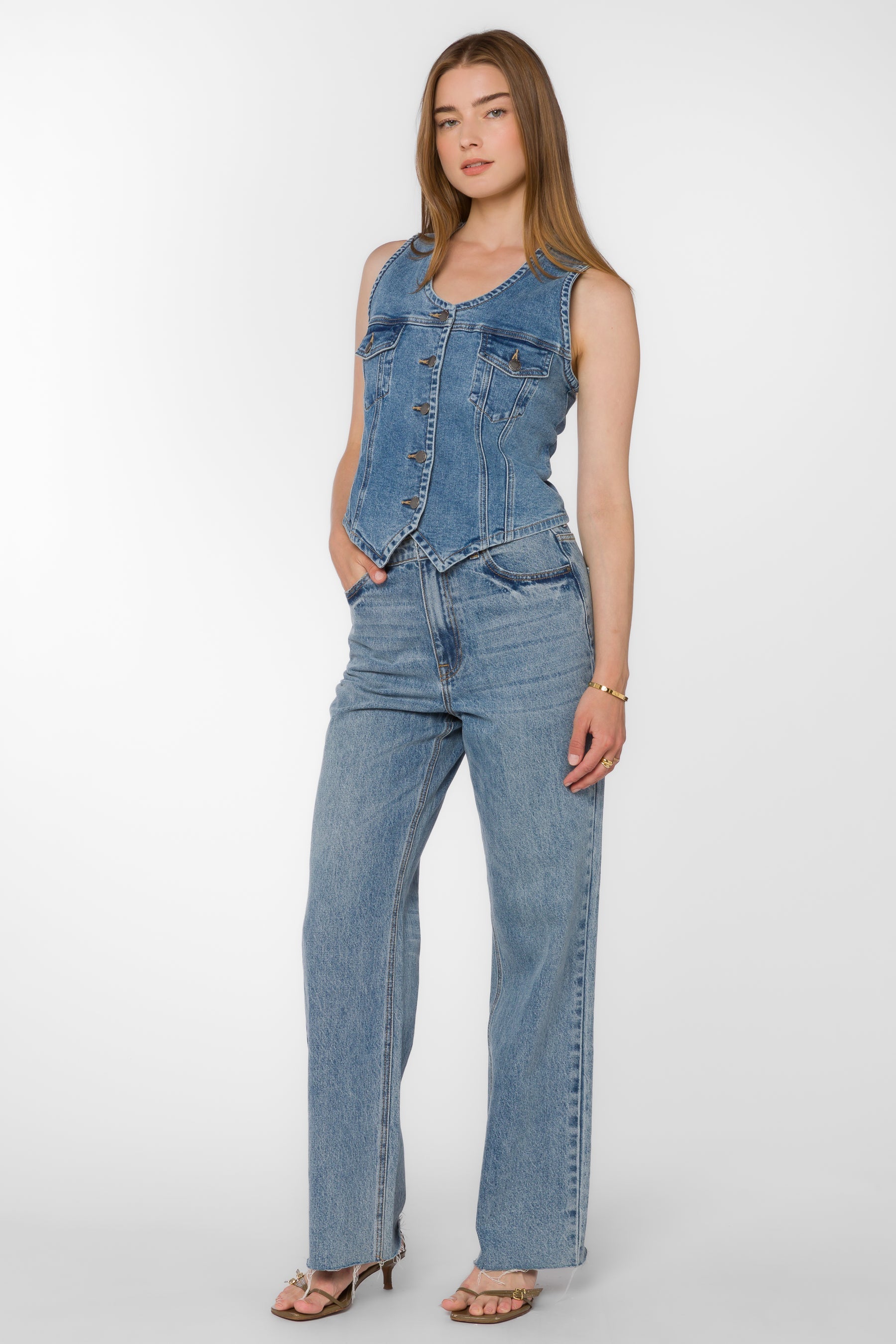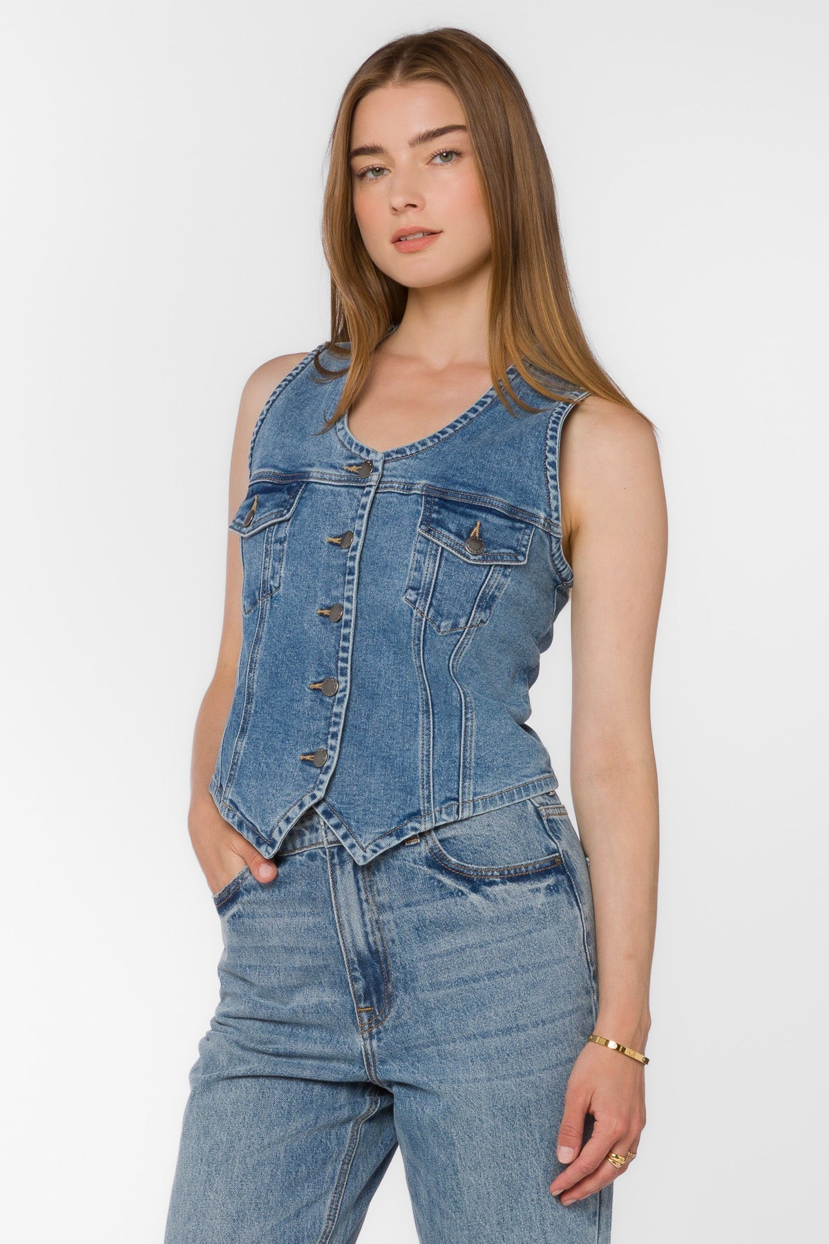 Expertly crafted for a stylish look, the Kiana Houston Blue Vest is made from high-quality denim and designed with a cropped fit. Showcasing a trendy and versatile style, this vest is perfect for any fashion-forward wardrobe, providing both comfort and effortless style.
