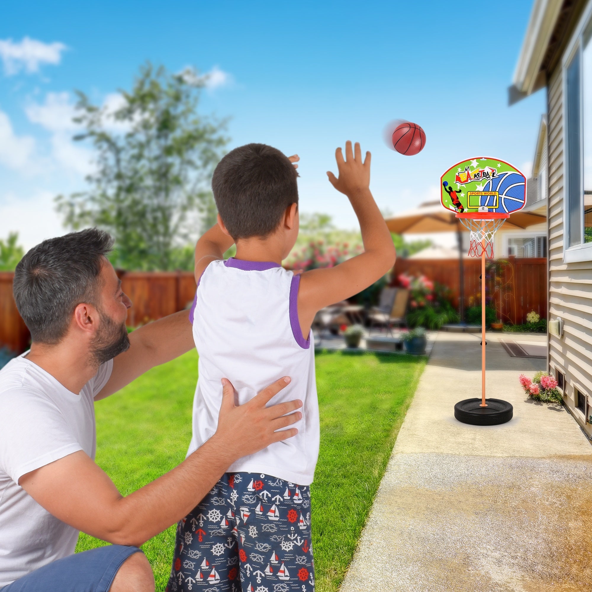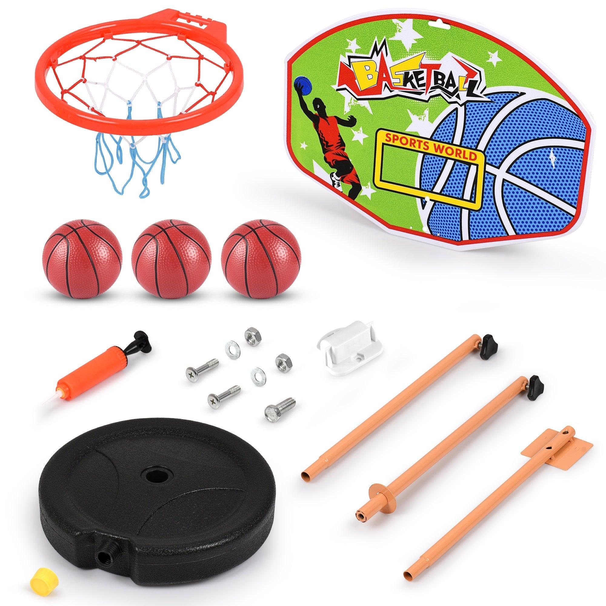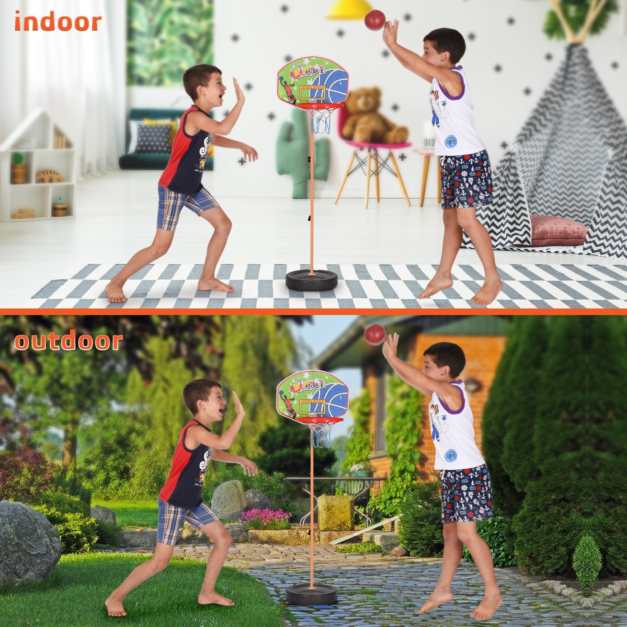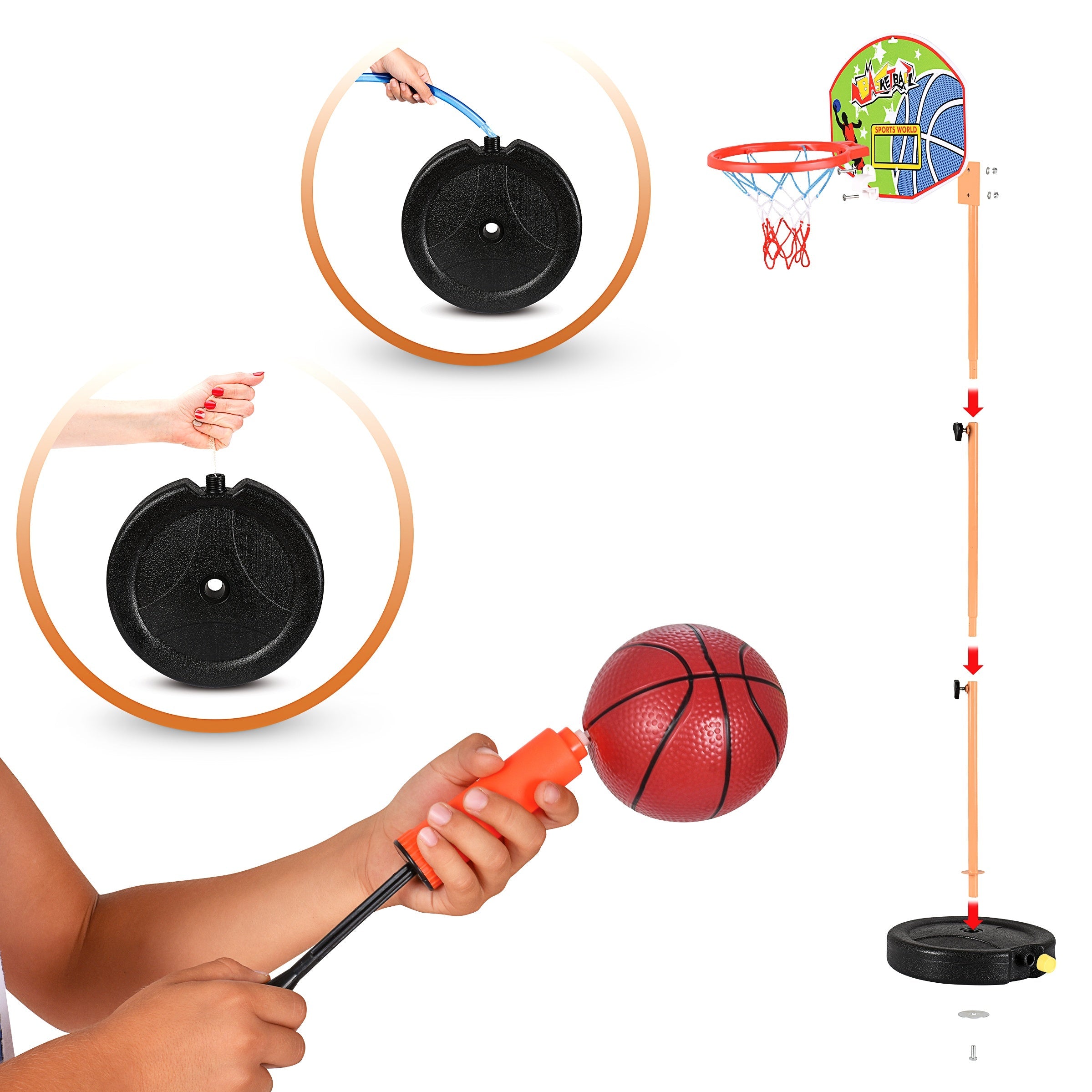 SAFE & CHILD-FRIENDLY — Made with high-quality plastic, our basketball hoop set for kids is safe, non-toxic, has a rounded corner structure that prevents any untoward injuries to your child while playing, and a stable base that can be filled with sand/water.