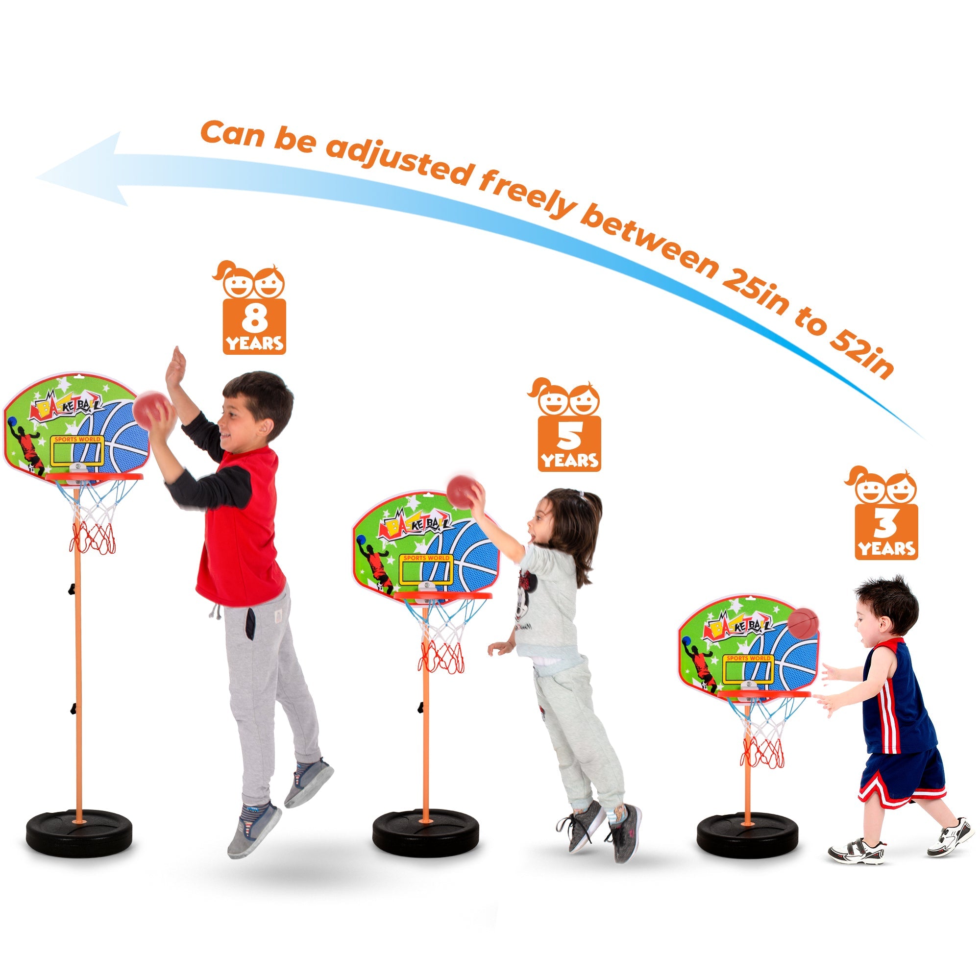 PIONEERING DESIGN — Basketball set for kids comes with an adjustable stand, the height of which can be easily varied between 25-52 inches, making it an ideal kid’s indoor basketball hoop set for little boy and girl aged between 3-8 years — BEST kids basketball set that grows with your child!