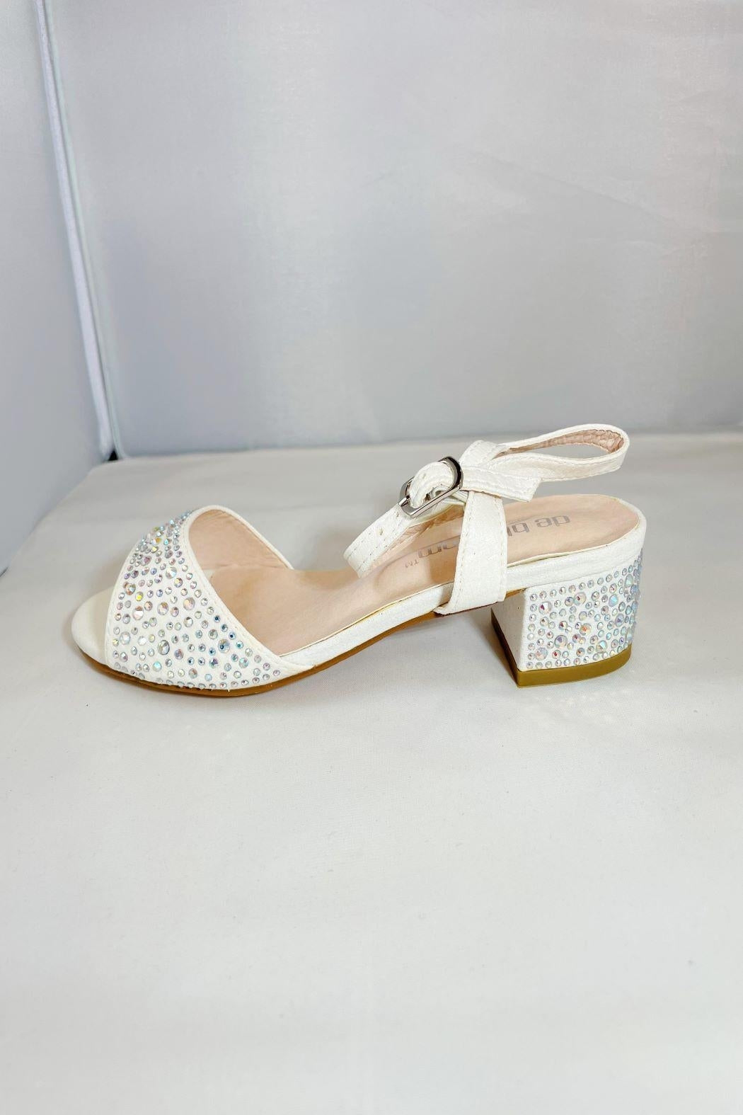 How adorable are these white iridescent block heels for kids? They have a 1.5" block heel with an adjustable ankle strap. These are perfect for the little girl in your life!