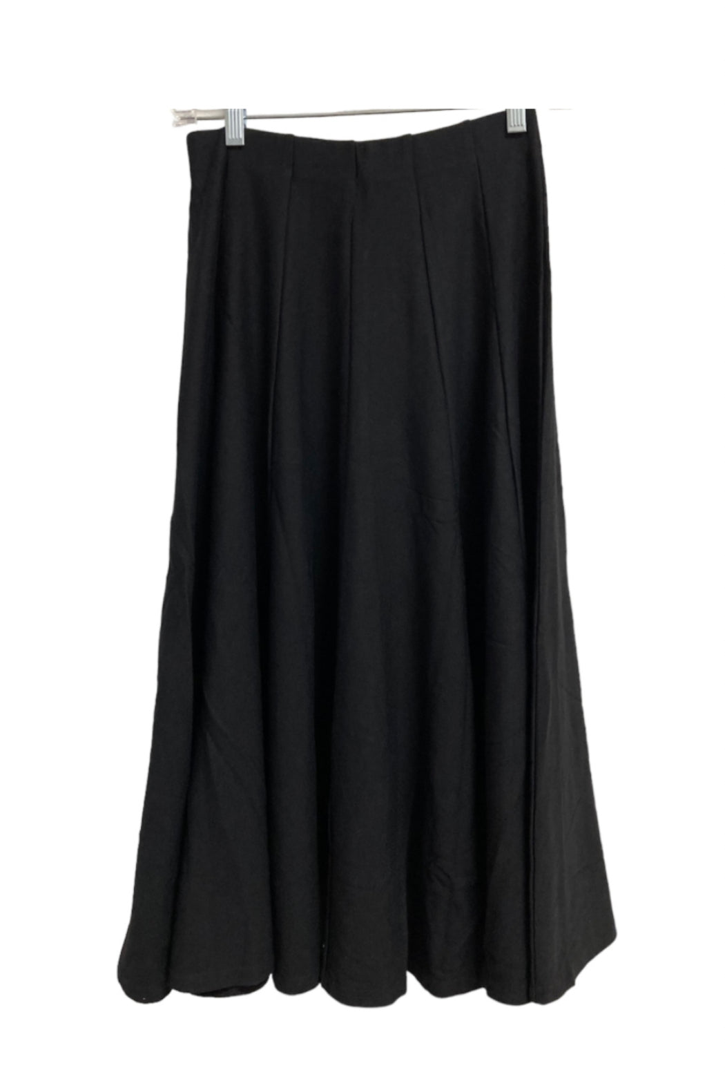 Pull on dressy panel skirt in viscose fabric that does not fade. Approximately 30 inches long.