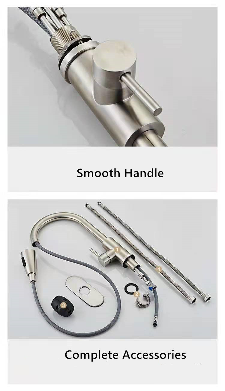 Safe sink faucet: This kitchen faucet is designed specially that cold water comes out when pulling forward, is more safer comparing to most kitchen faucet in the market. CARE MUCH MORE FOR YOUR SAFETY, especially for CHILDREN!