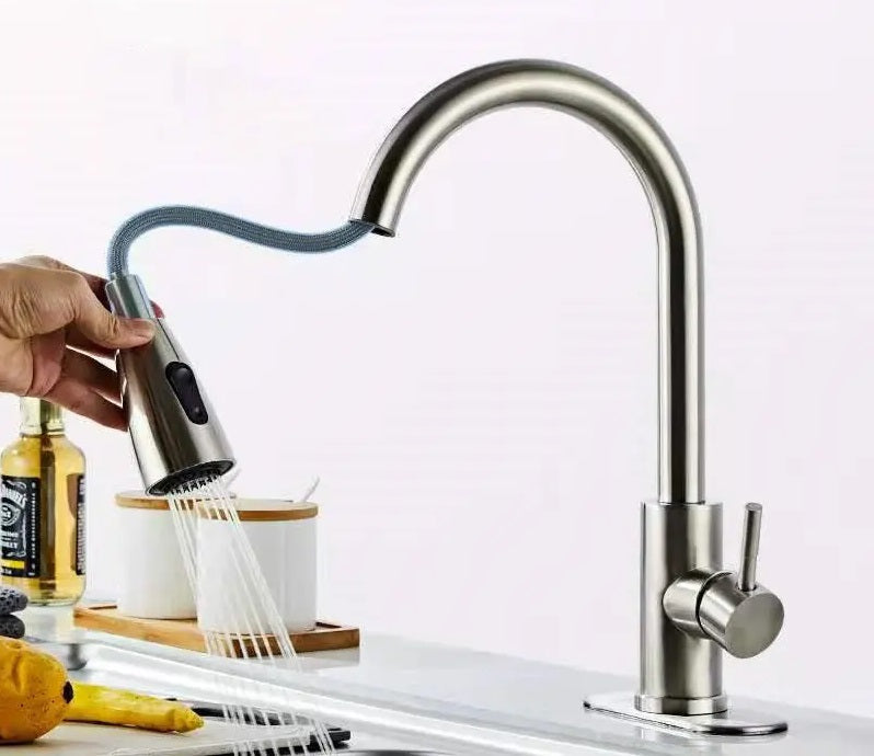 Kitchen Faucet Stainless Steel with Pull Down Sprayer Chrome Finish