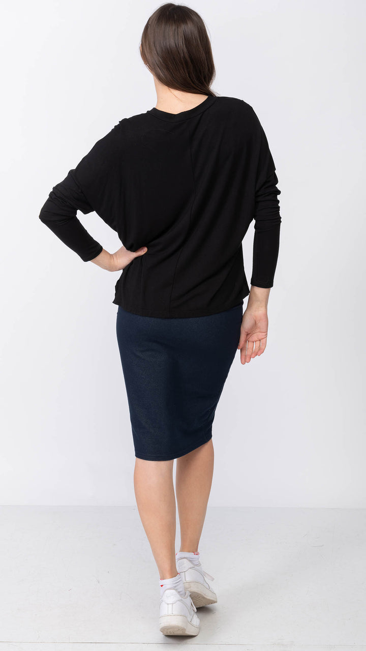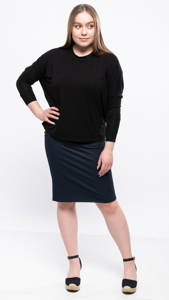 - This top blouses out, with a more fitted waist that lays well on your skirt
