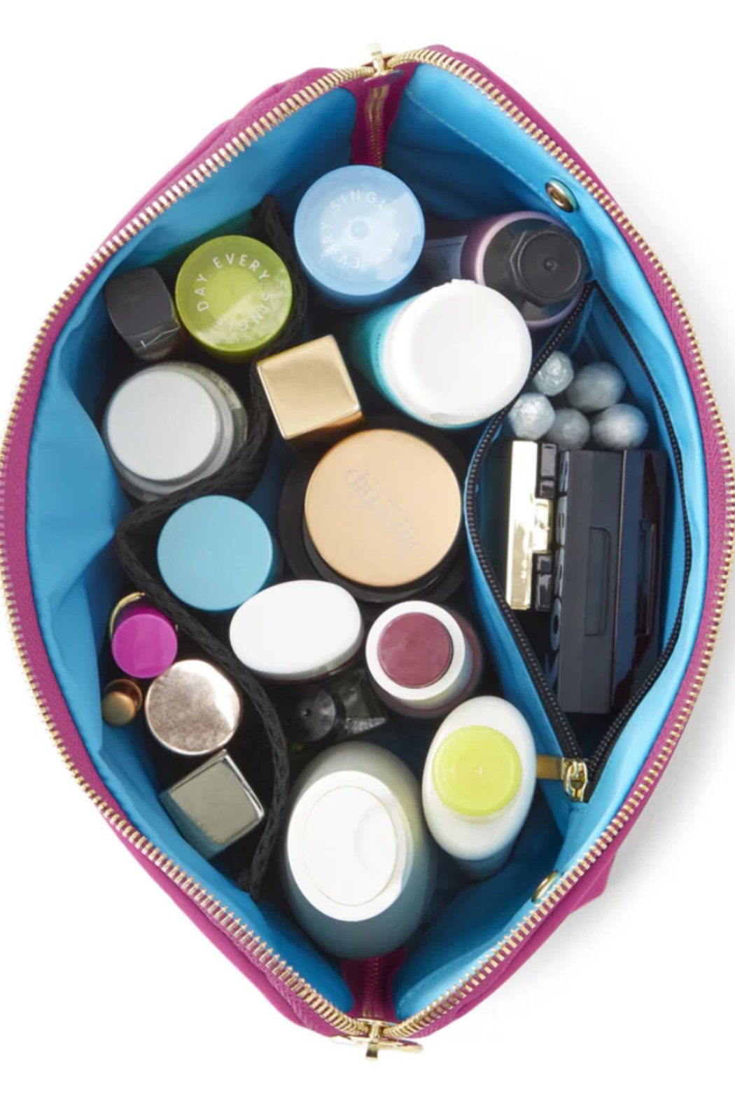 Upgrade to the makeup bag that not only stores and protects your makeup, but has pockets made for your beauty blender, eyelash curler, and more. The Signature Makeup Bag has roomy compartments and opens on three sides to allow for easy access to see all of your products. No more digging! Add a Snap-in an Organizer for more organization and separation. Fabric bags are fully machine washable. Leather bags have a zip-out interior liner that is machine washable.