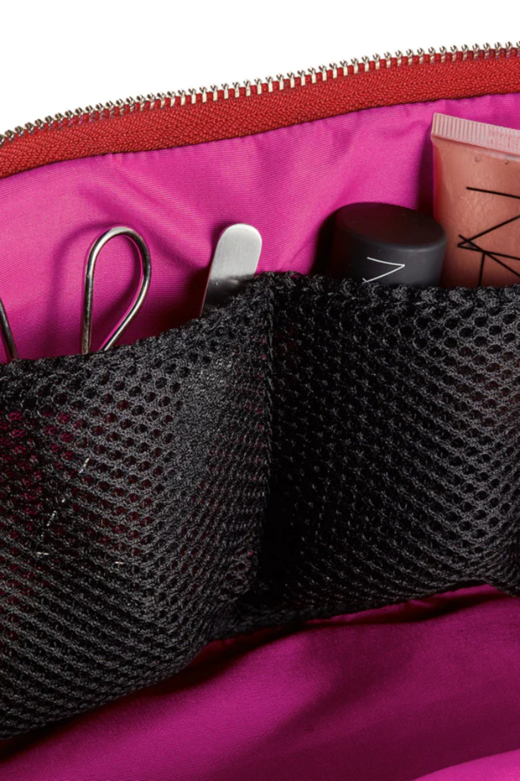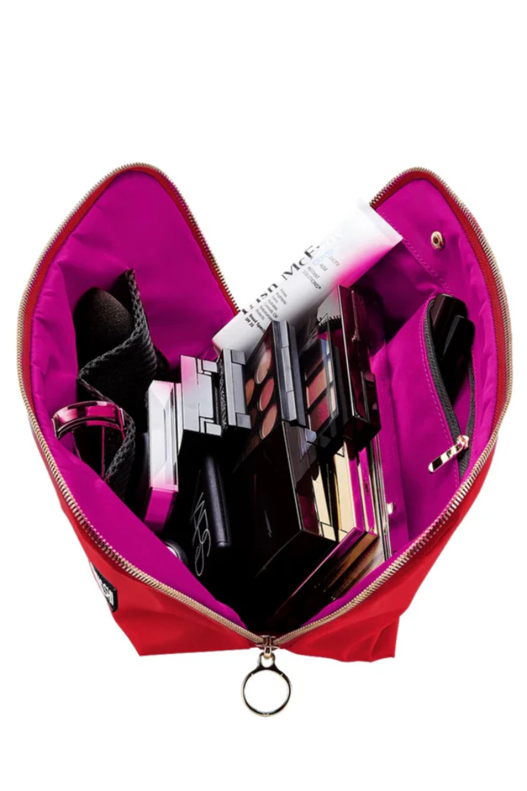 KUSSHI Vacationer Makeup Bag (large) Candy Apple Red fabric with Pink Interior