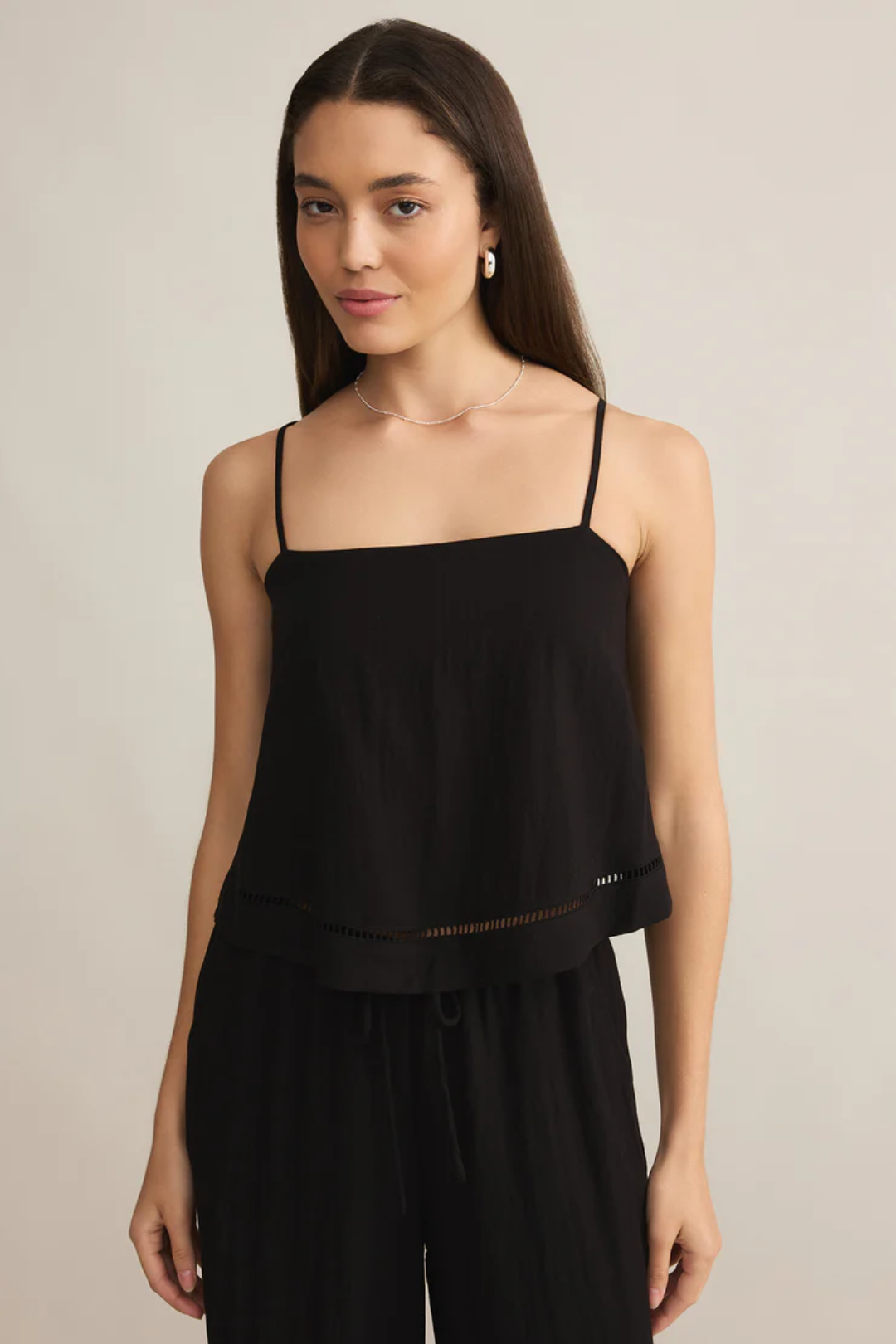 A classy and lightweight La Luz Tank from Z Supply is the perfect piece to elevate your warm-weather wardrobe. Made from a textured rayon fabric, this tank has a cropped silhouette, adjustable spaghetti straps, and delicate lattice trim at the hem. Perfect to wear for any occasion.
