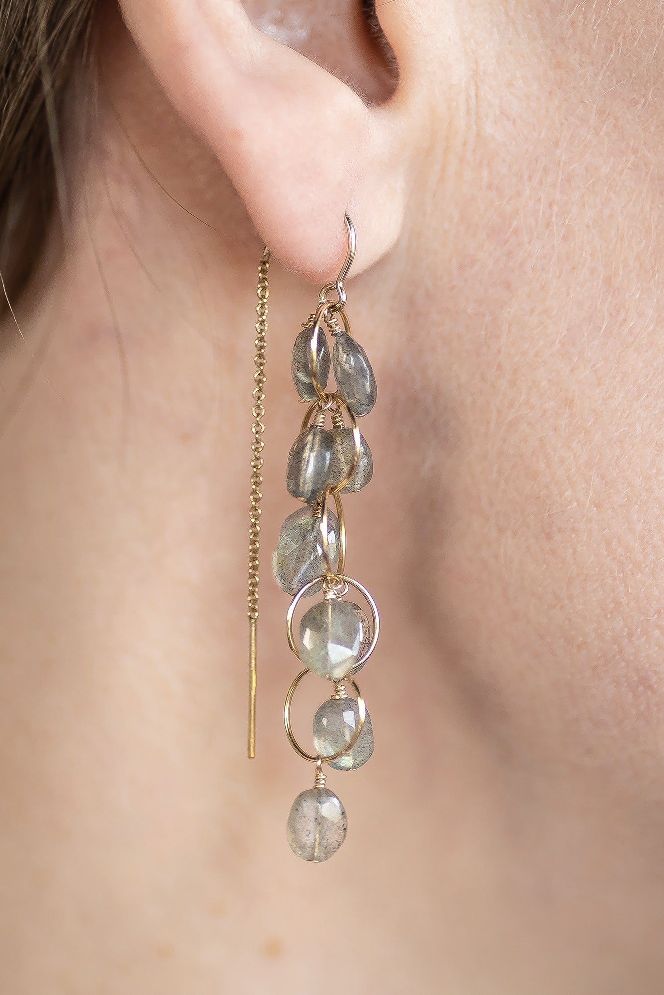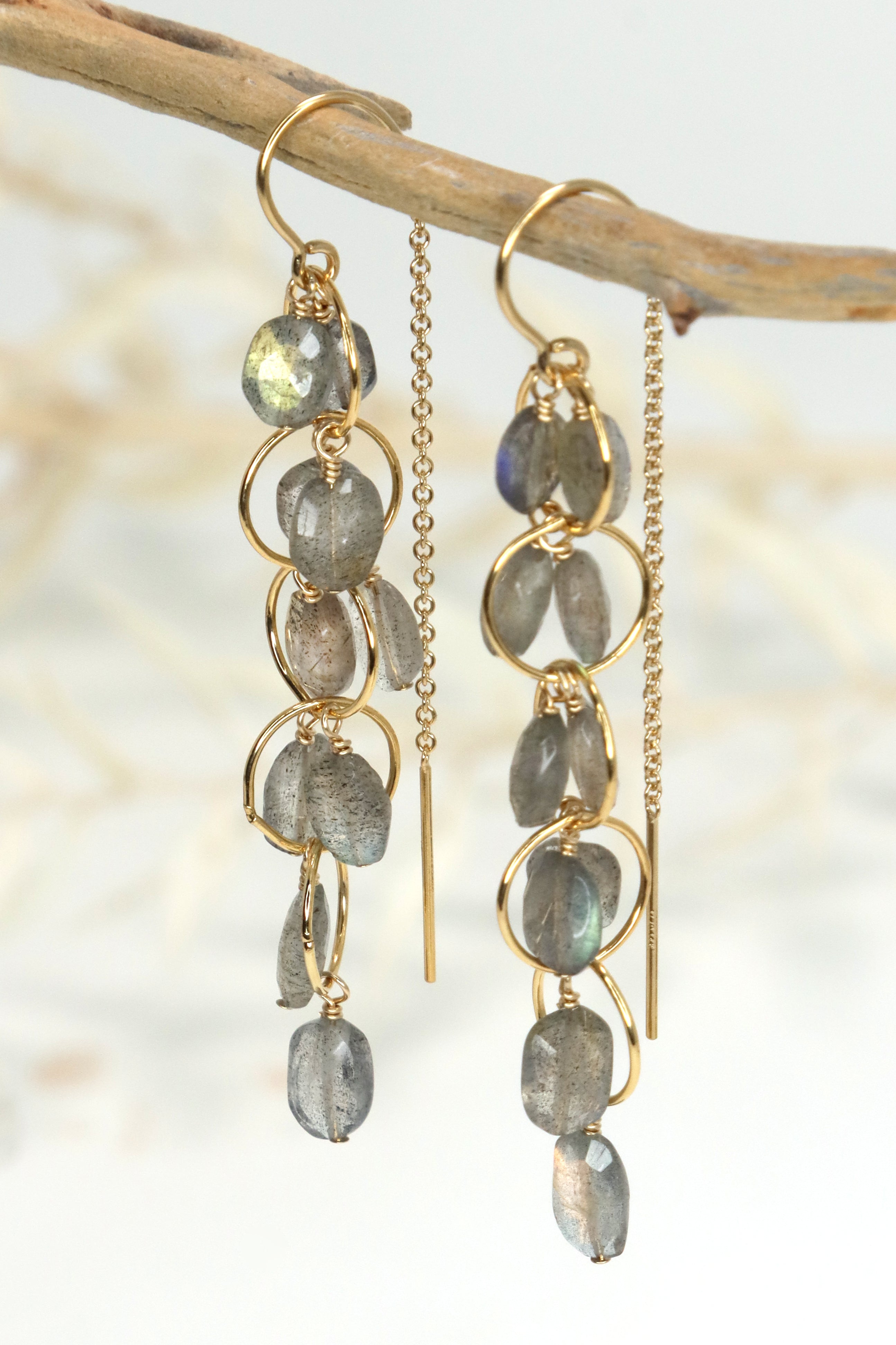 One of our best sellers, this cascade of labradorite will certainly help complete every look. *these have a hook (not threader as pictured)