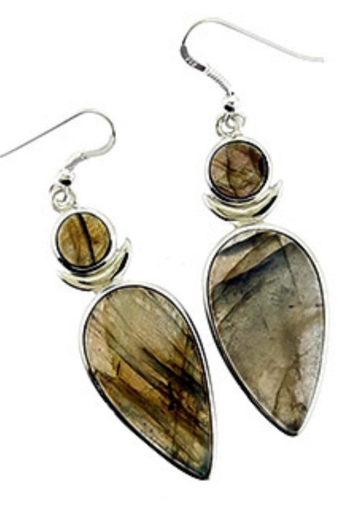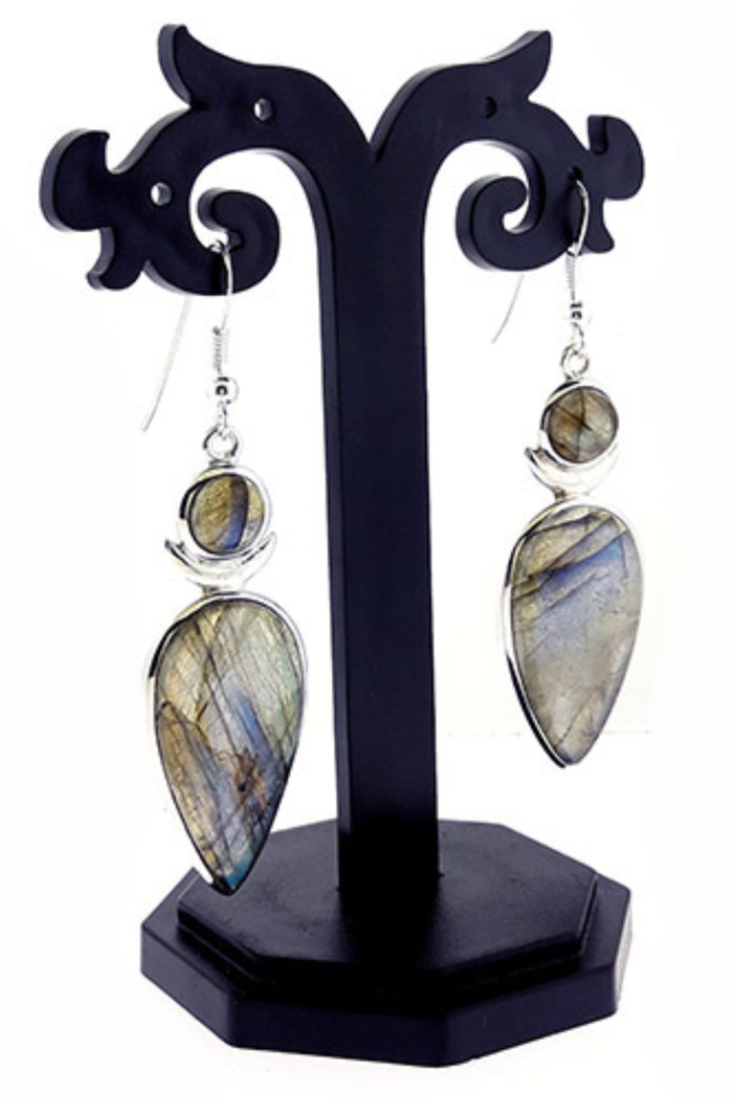 Large chalice design earrings in sterling silver . . . Labradorite is a powerful protector, creating a shielding force throughout the aura and strengthening our natural energies protecting against the negativity and misfortune.