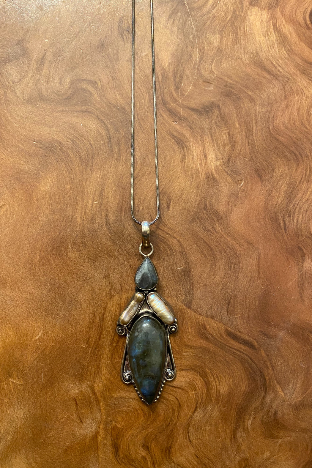 Labradorite & Mother of Pearl Sterling Silver Necklace on 23" sterling silver chain.