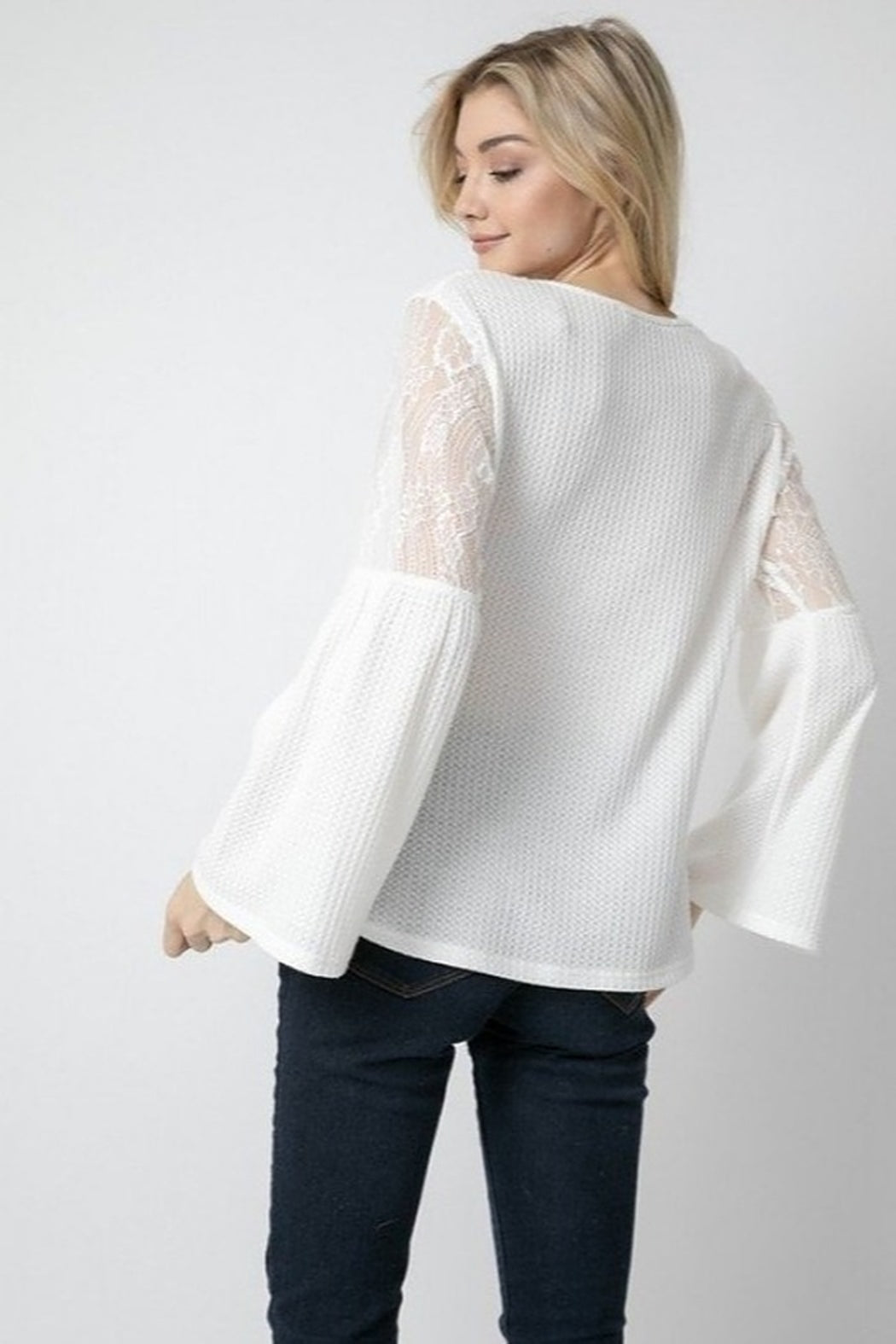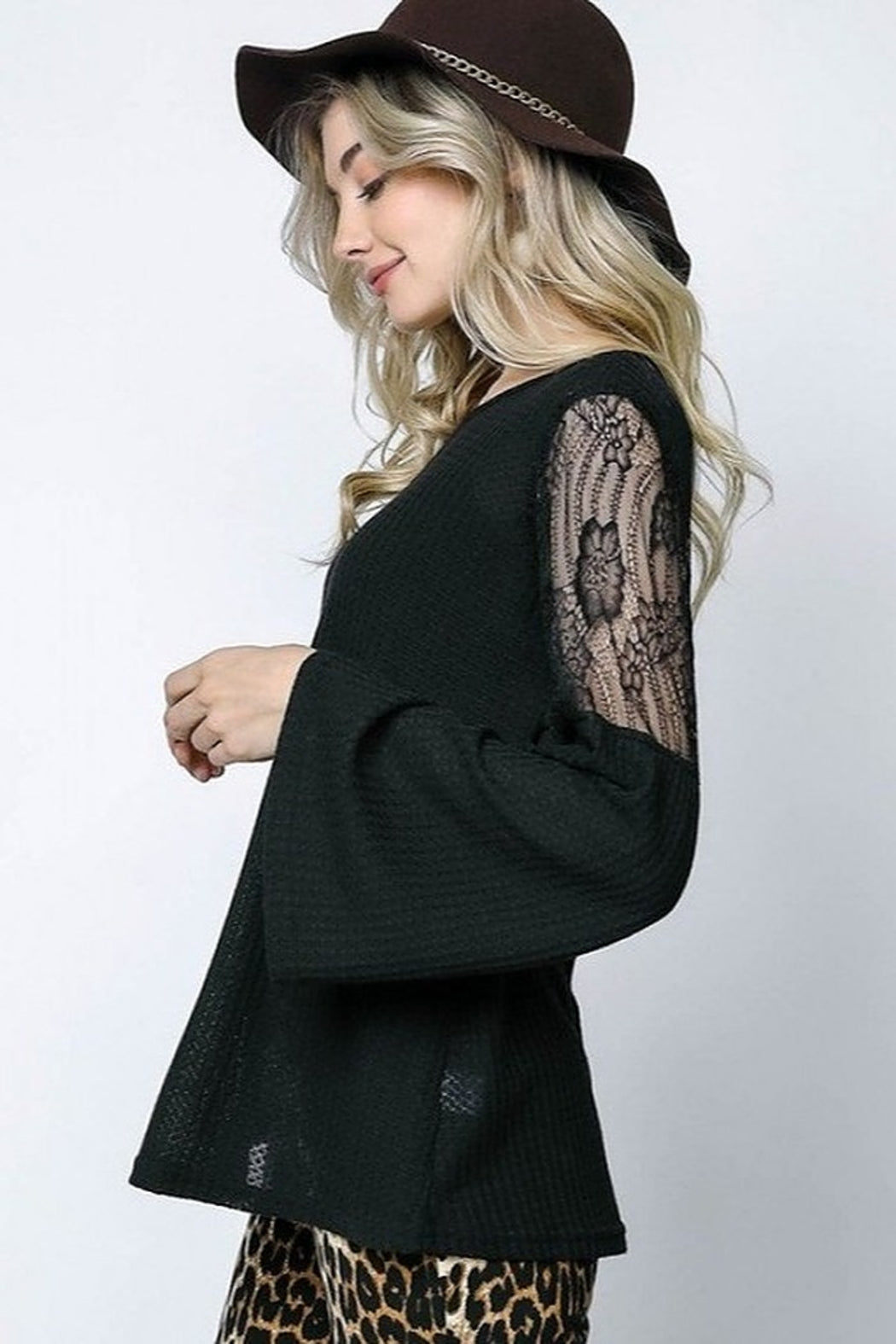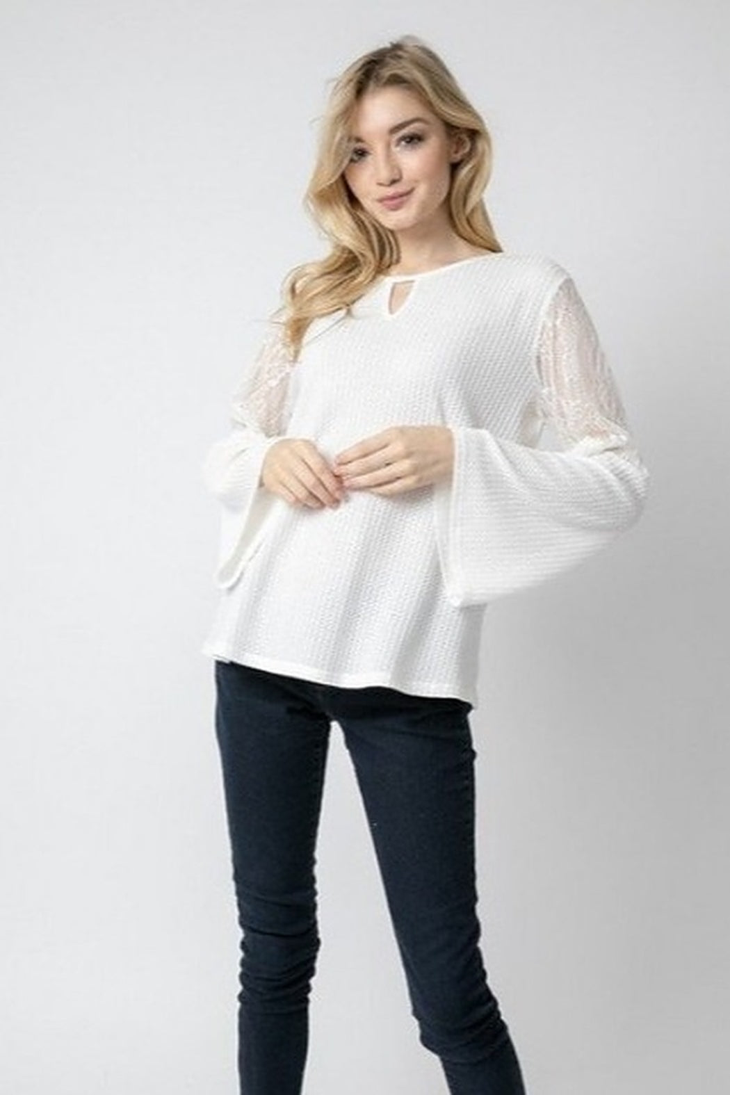 FRONT HOLE ACCENT WITH LACE BELL SLEEVE THERMAL TOP