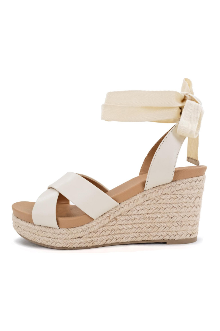 ESPADRILLE PLATFORM, LACE UP CROSS STRAP WEDGE