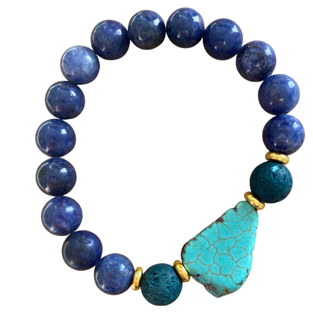 Lapis Lazuli, Lava Rock and Turquoise Stone Bracelet