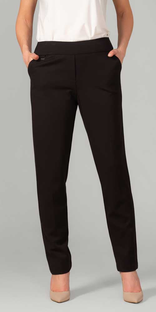Straight leg essential pull on dress pants with slash pockets. Made in CANADA! This pant will be the perfect work pant, dress pant ,funeral attire and more . Simple straight/slim leg with lots of movement for comfort and style.