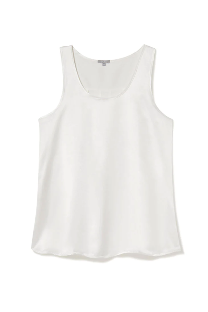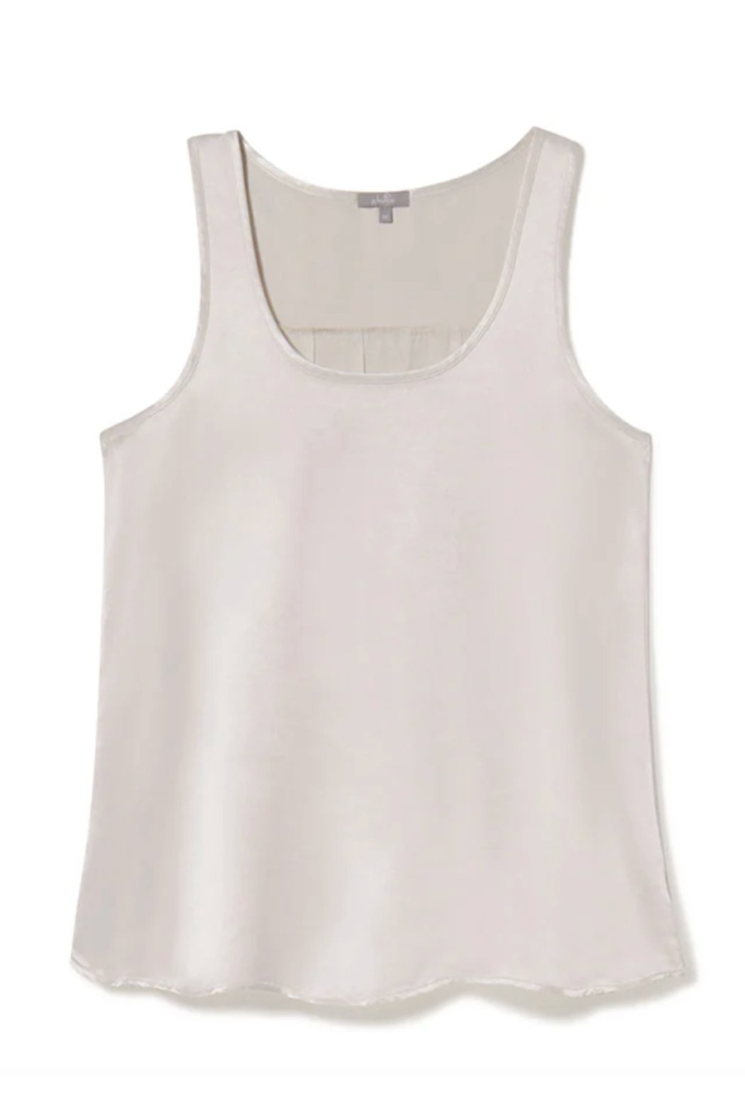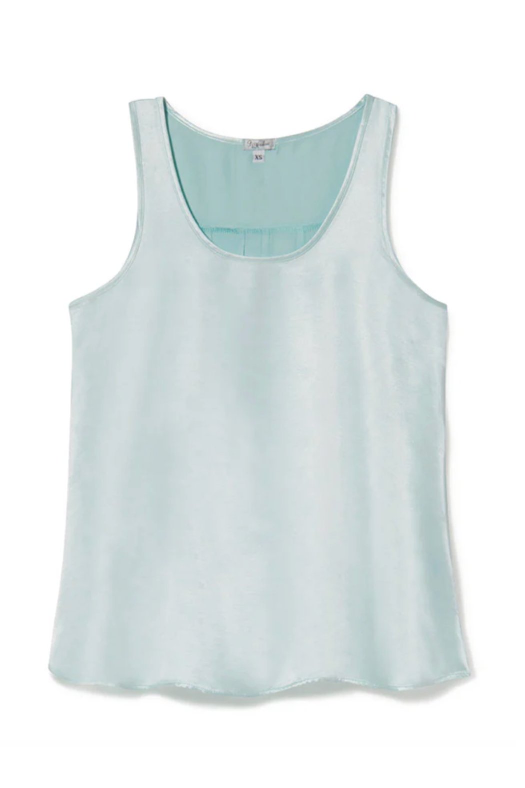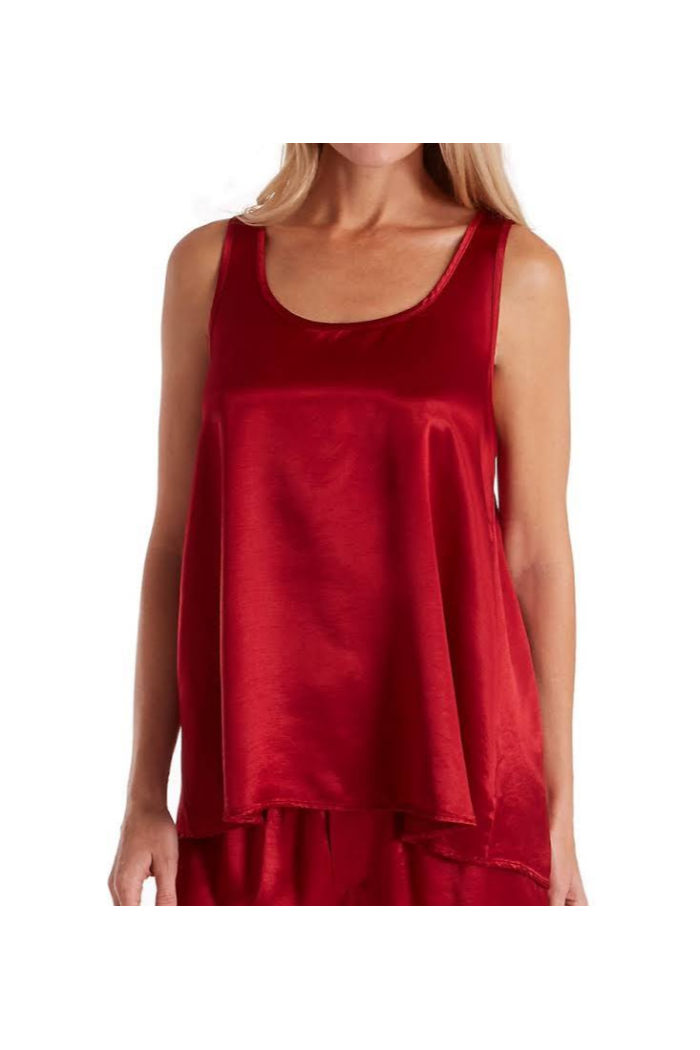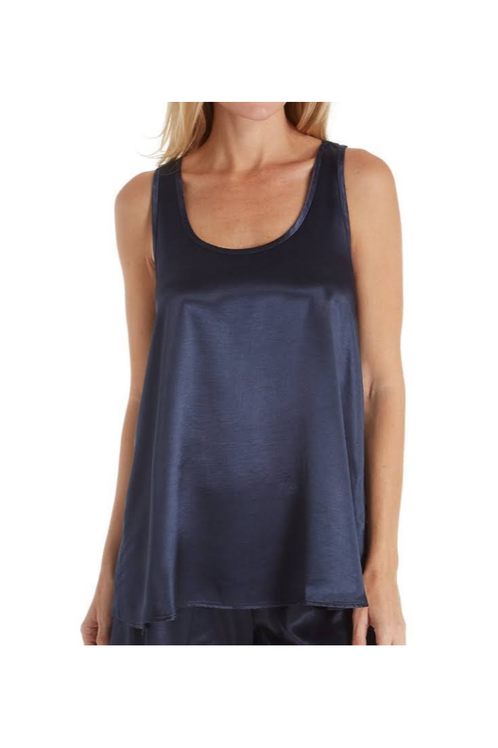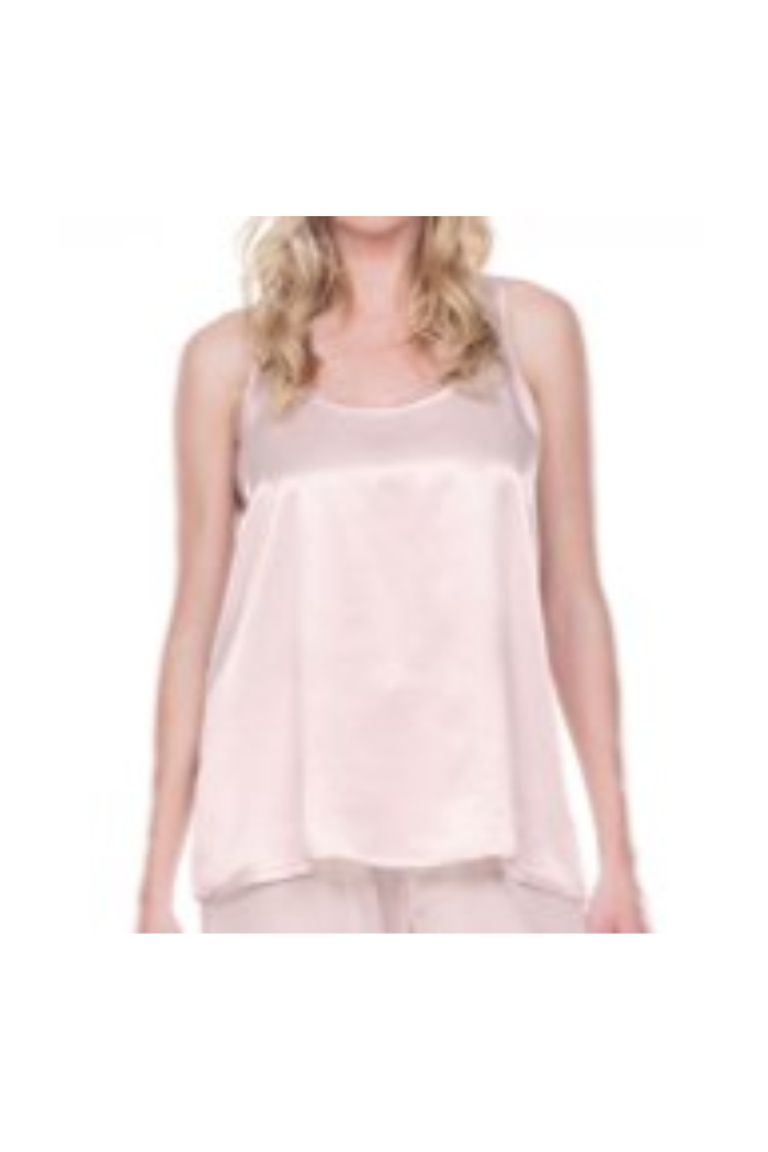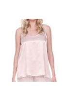 The PJ Harlow LAURA Racerback Swing Tank Top can be worn as a gown with satin boyshorts (MIKEL BOXER) or as a top with pants. Made with a satin faille blend, this top is loose and flowing with a racer back design.