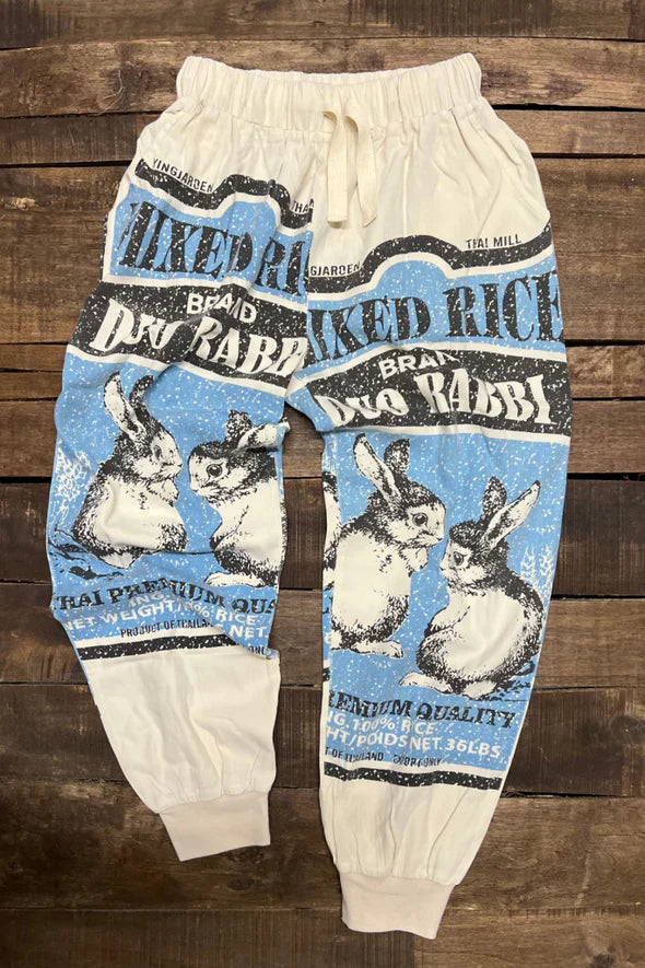Cutest Joggers EVER! You'll love these vintage bunny feed graphic joggers featuring an elastic waist, ankle cuffs, and drawstrings for the perfect fit! Don't sleep on these! Pair with our Emerald Seasons Best All Ears Top for a perfectly matched set!