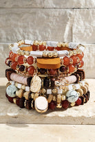 Charming multi-layered and mixed lustrous gold-tone beads, natural stones, wood and acrylic beads featuring charms bracelet set