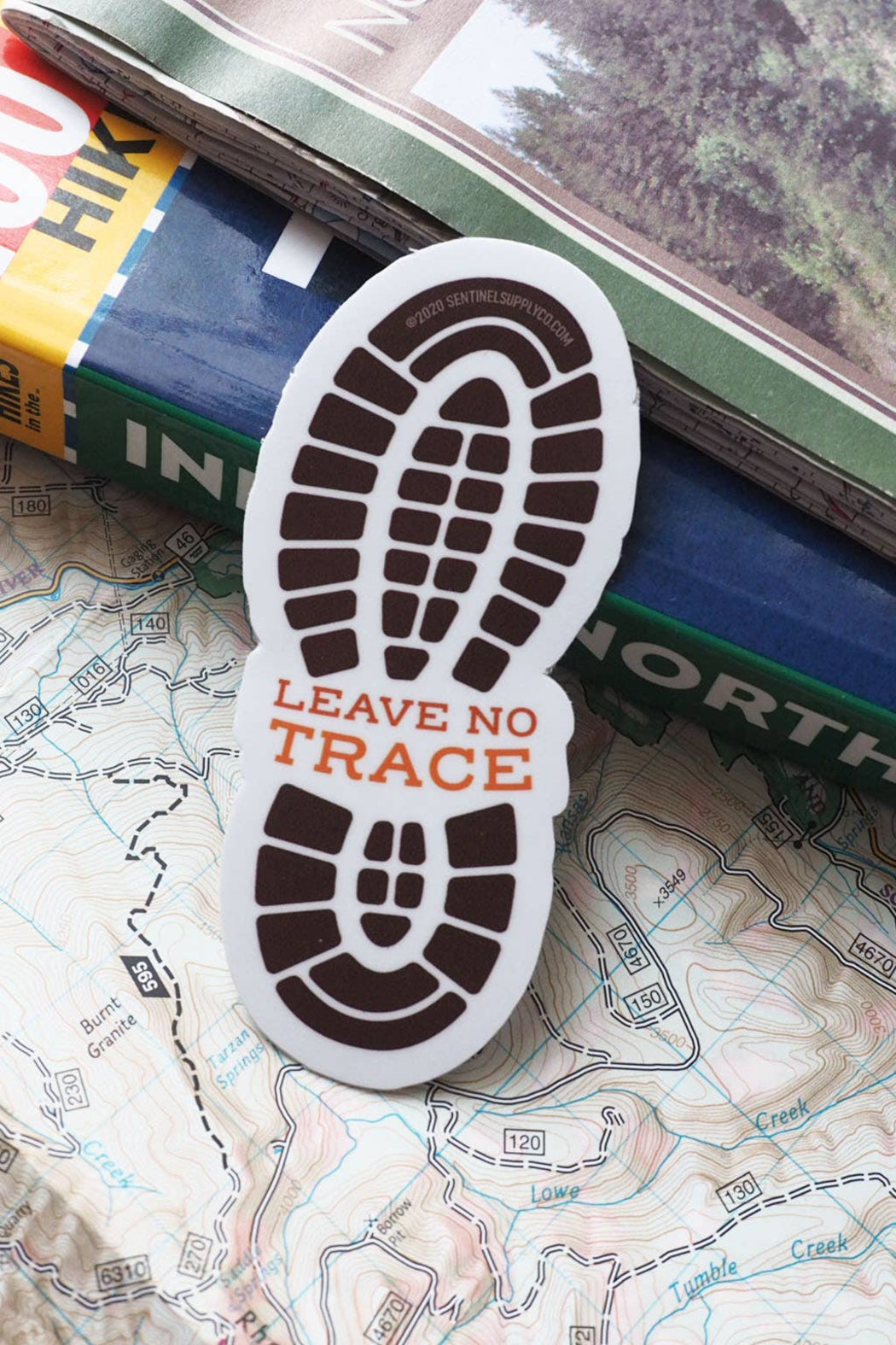 Tread lightly, leave no trace! These die cut vinyl stickers are a simple yet bold reminder for hikers, mountaineers, and anyone who loves spending time in the great outdoors. Inspired by a classic vintage public service announcement, these waterproof boot print decals are a great reminder to camp responsibly, respect the beauty of the great outdoors, and leave our public lands better than when we arrived. Display these Leave No Trace decals on your water bottle, laptop, or cooler. Stick them on your RV camper, car bumper, motorcycle helmet, or truck window. Dimensions: 3.7" high x 1.6" wide. Leave No Trace sticker is the left foot hiking boot print, Tread Lightly sticker is the right foot hiking boot print. Die cut waterproof UV laminated vinyl designed to endure many years of travel and use indoors and outdoors. Made in Idaho.
