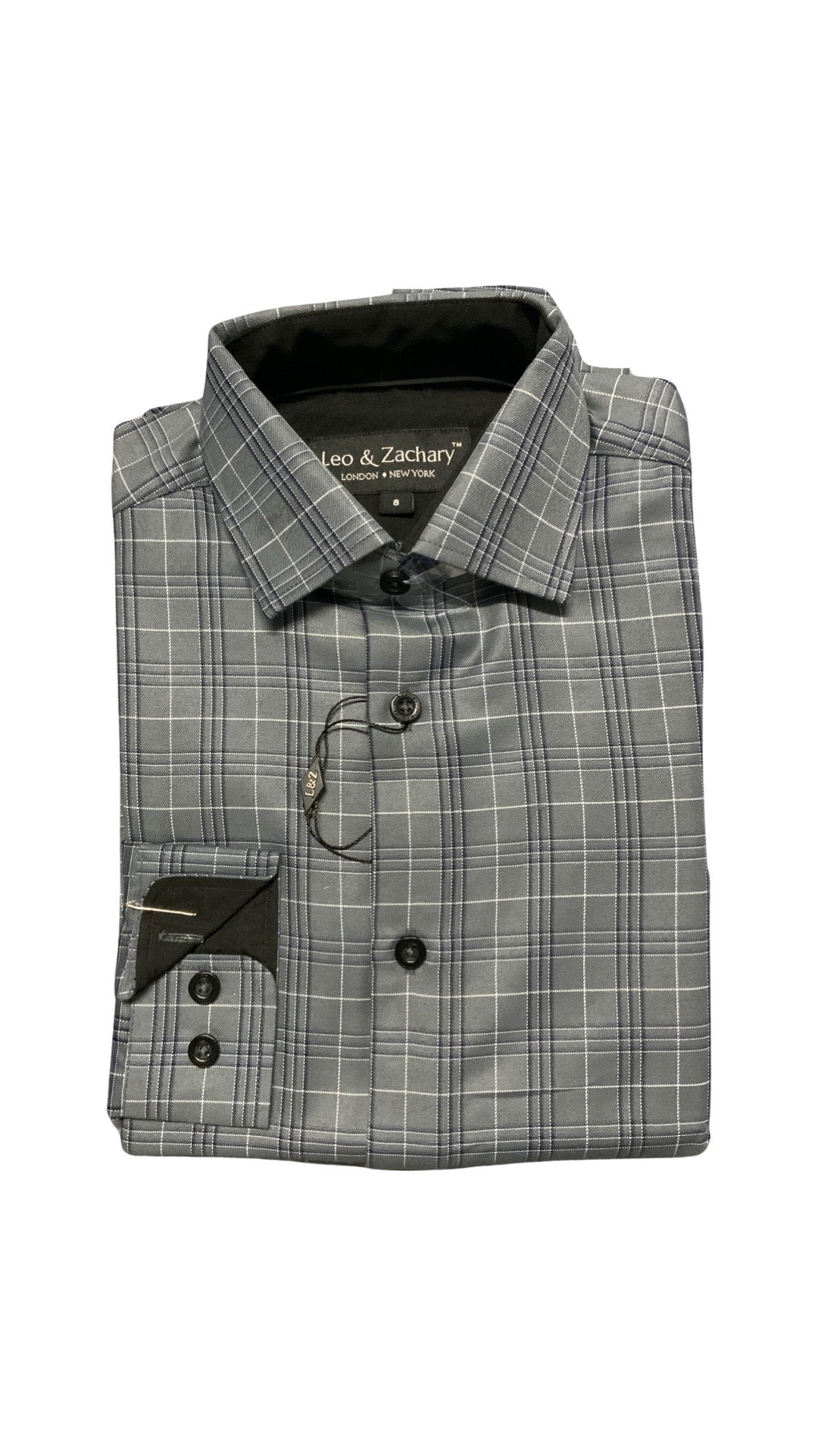 Leo and Zachary Boys' Plaid Dress Shirt | Stone Pattern