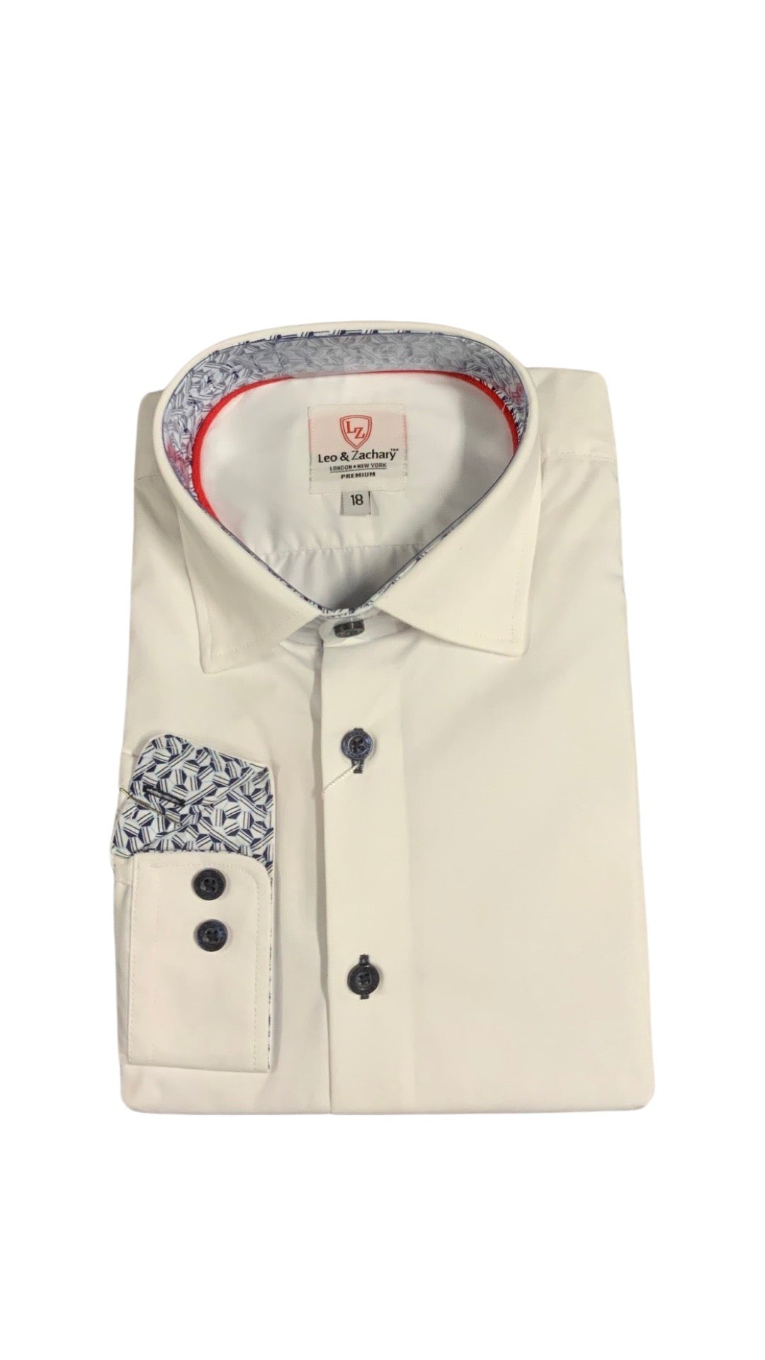 Leo and Zachary boys formal outfit - Boys' White Dress Shirt with Navy: Elevate his formal wear with stylish navy details. Leo and Zachary quality. Buy now!