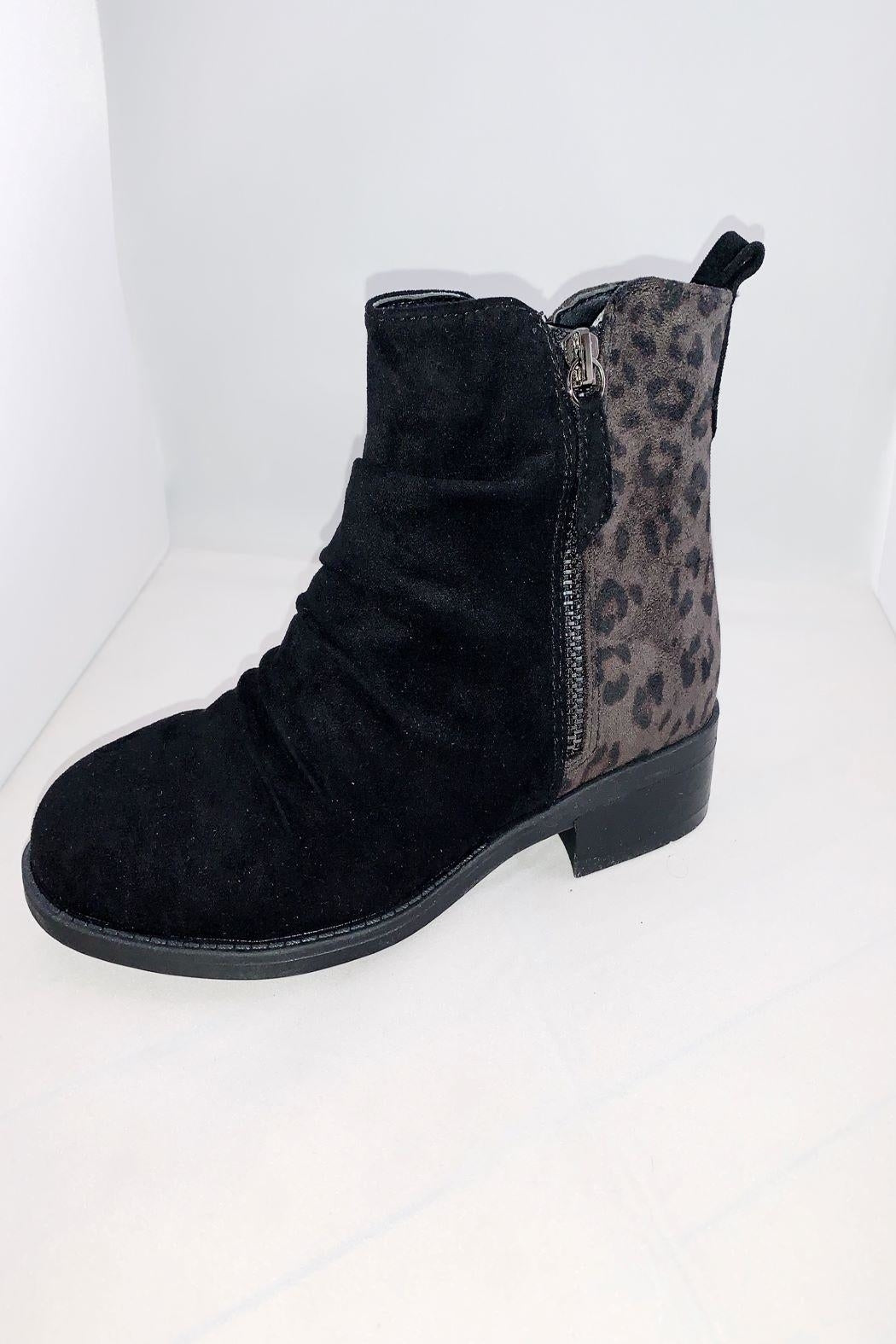 These Leopard Detail Booties will be your new favorite shoe. They are a solid black on the front half of the shoes then on the back it has a leopard detail. This bootie has a faux zipper on the outside and a real zipper on the inside. The front black part of this shoe also has ruching details that are really cute! You will be comfortable all day in these as they only have a little bit of height added to them. They will look just with jeans, leggings, skirts, or even a dress!