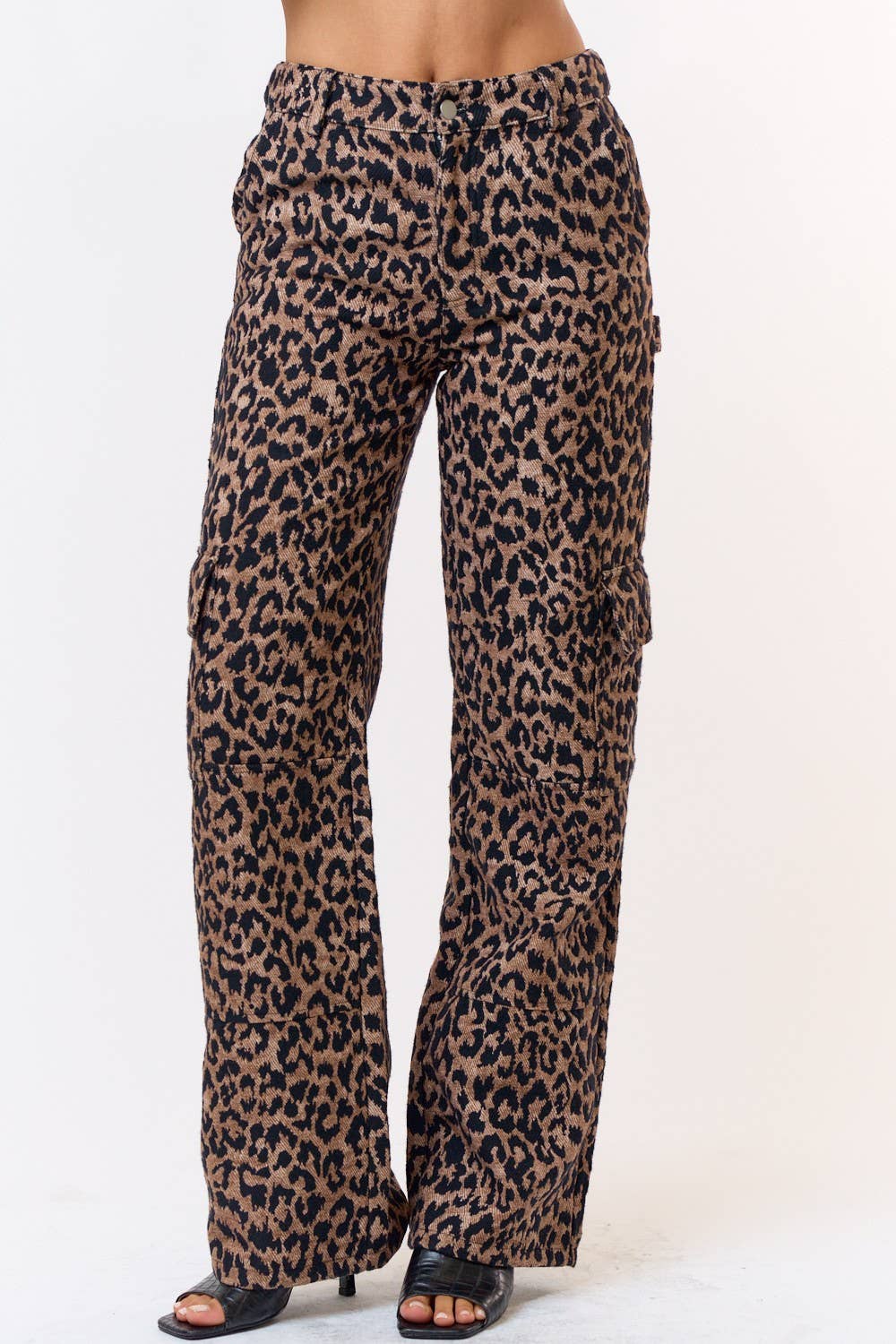 Unleash your wild side with our Leopard Print Cargo Pants! Featuring a wide leg design, these pants are perfect for staying cool and cute this fall. Embrace your inner fashionista with a touch of safari-inspired style. Roar with confidence in these pants, meow!