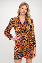 Make a fierce fashion statement with the Meet Me in Santorini bold animal print wrap dress. This stunning piece features an eye-catching leopard print in vibrant hues of orange, purple, and black, perfect for adding a touch of wild sophistication to any wardrobe. The wrap design and tie waist create a flattering silhouette, while the long sleeves provide a chic and versatile look suitable for various occasions. Ideal for retailers seeking to offer trendy, high-quality contemporary fashion, this dress is sure to attract customers who love to stand out.