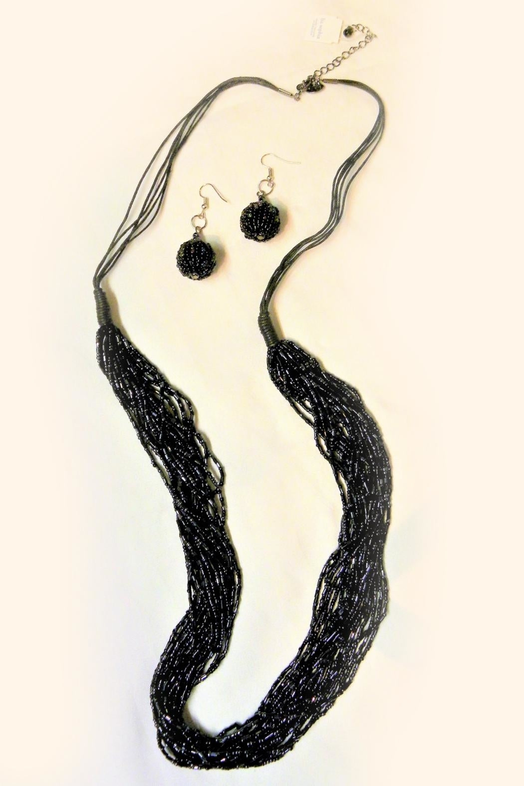 This is the Lia Sophia Ravish Necklace. Made up of thousands of glass seed and tube beads on 20 strands of cord, with gun metal hardware. We hand made seed bead earrings to perfectly match it. We looked it up, and the word Ravish means "Intense Delight" which is what you'll have when you get a look at this. Try as we may we just couldn't get a picture to do it justice. This is the kind of set you'll be using again and again! These items comply with safety regulations of lead, nickel and other components. Find other moderately priced jewelry on the Mimi's Gift Gallery boutique page.