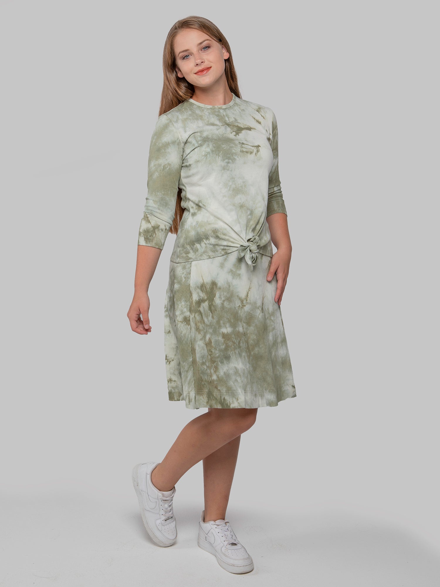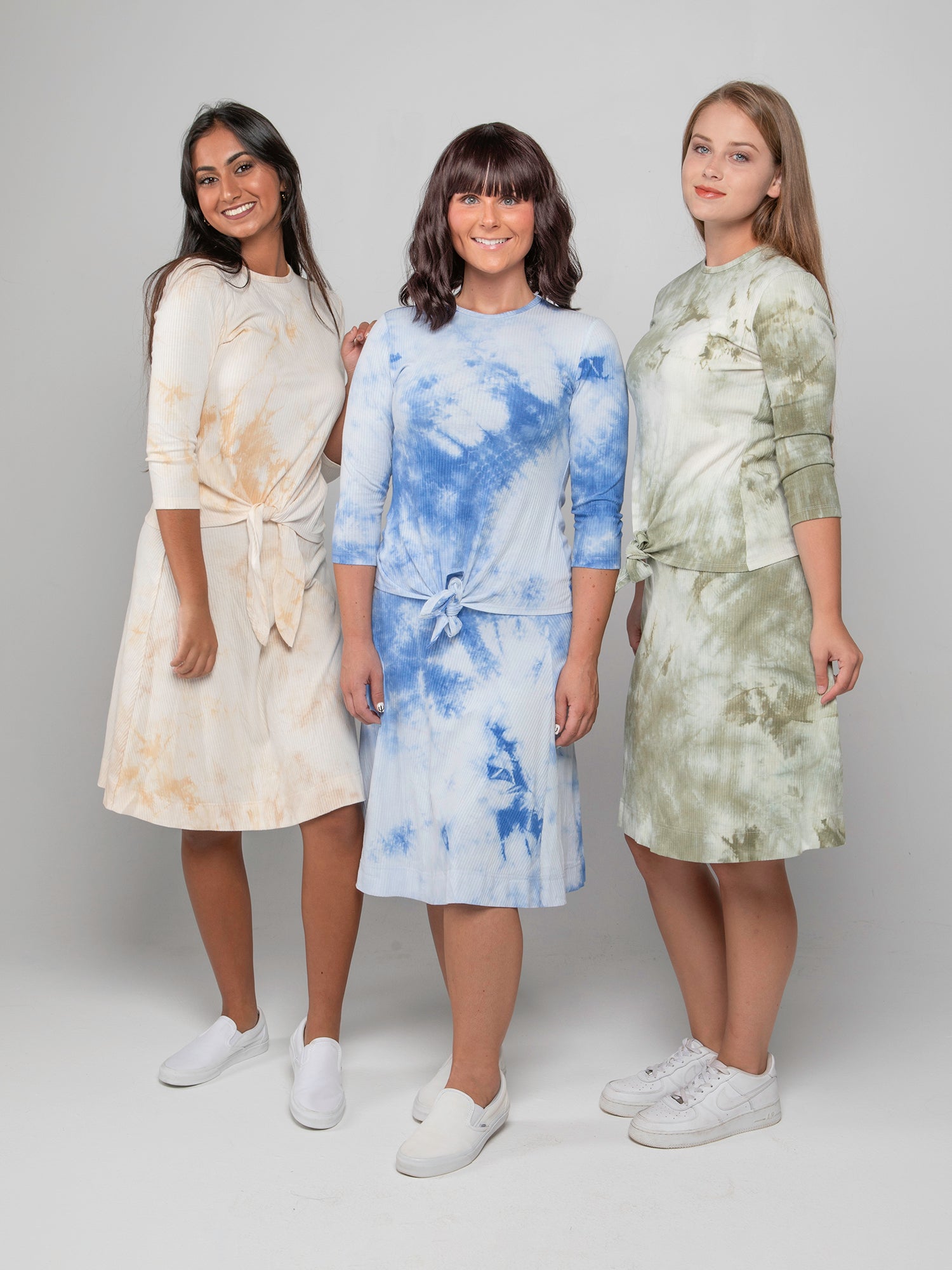 •LOOK: Lilac Brand has created a ribbed tee shirt top that is a comfortable soft tie-dye wash. The top features a front waist center tie. This top can be paired with the matching ribbed maxi length skirt or worn separately.
