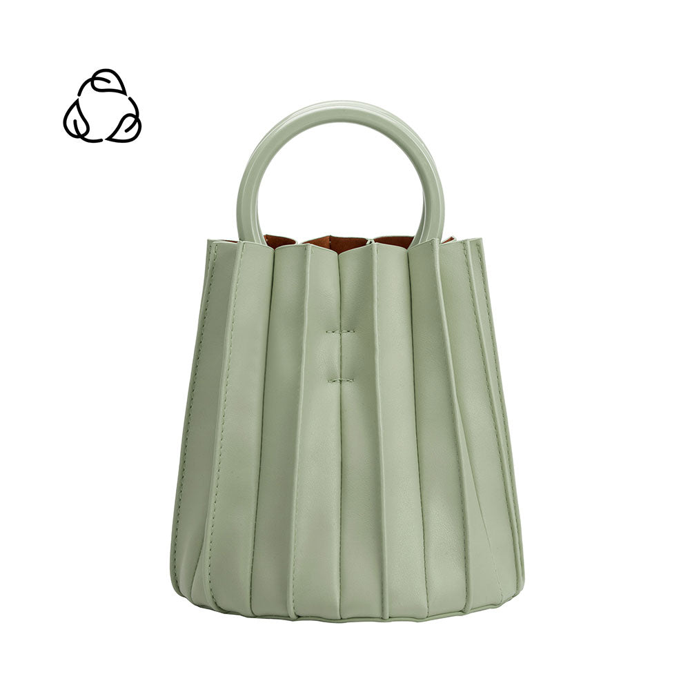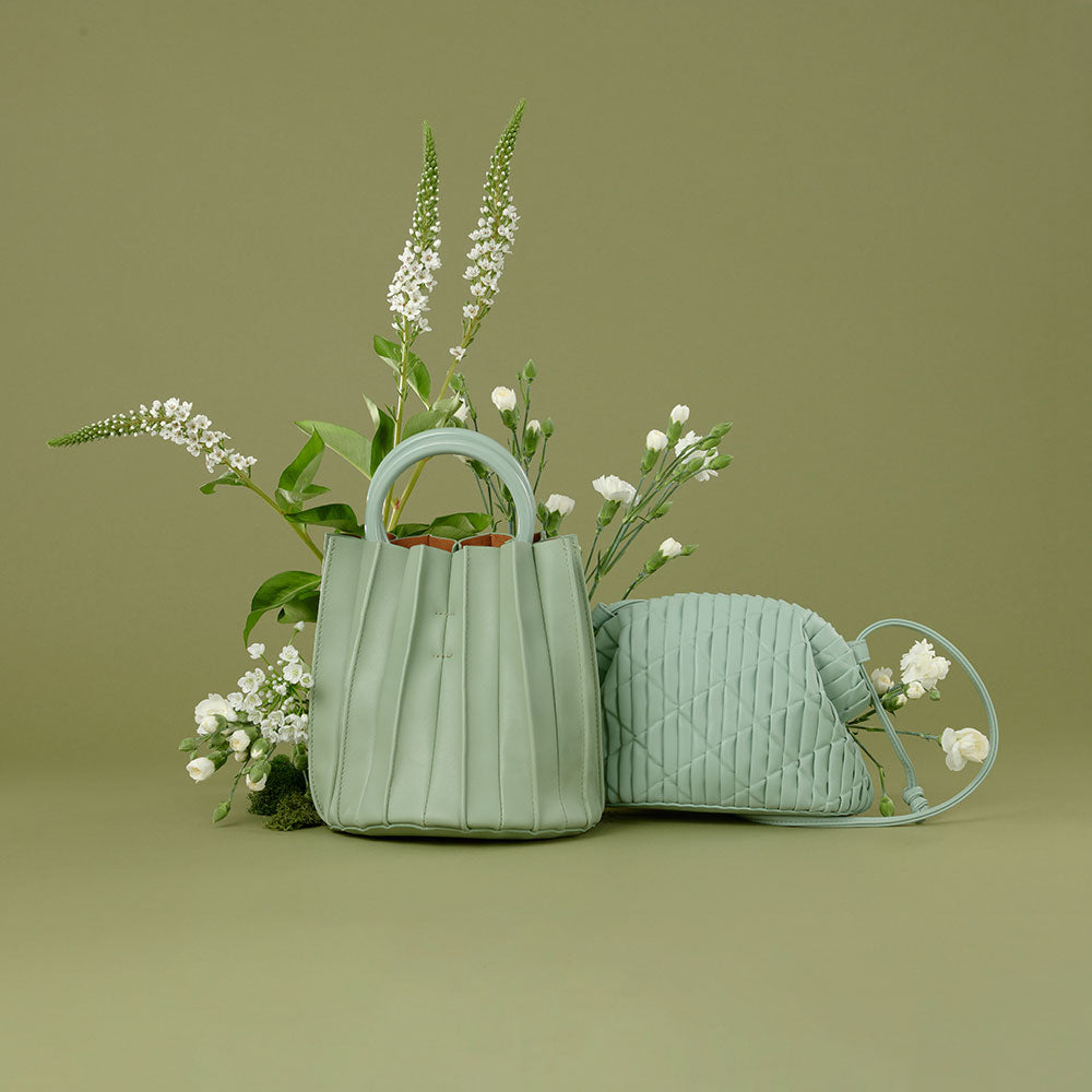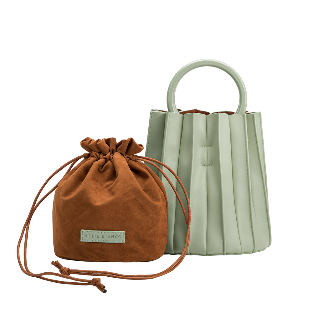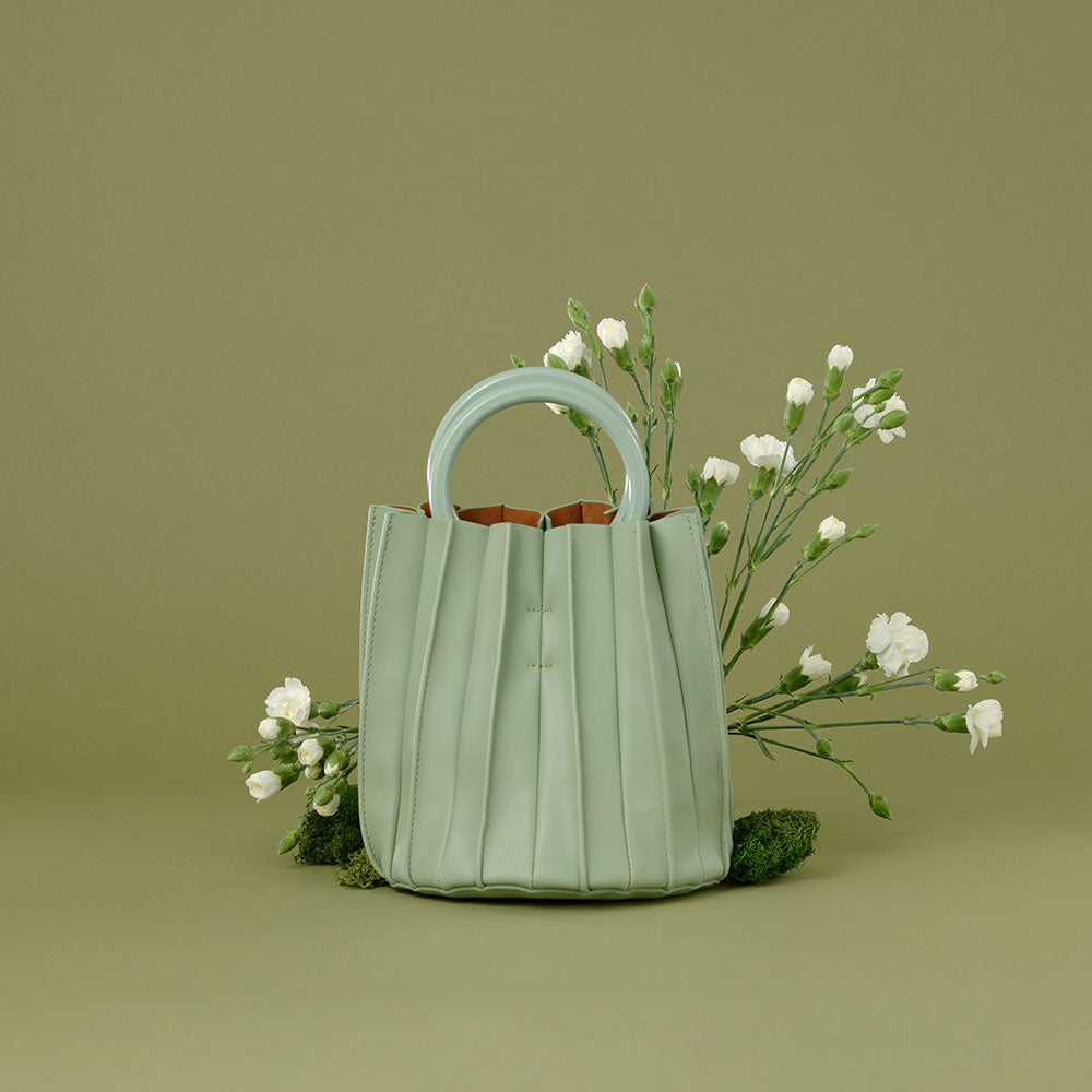 Our Lily bag features an accordion pleat design and includes a drawstring pouch to keep your most beloved possessions safe. The best part about this stylish bag is that it's made of recycled vegan leather. Meaning it's made of 40% post-consumer recycled polyester and 18% post-consumer recycled PU.