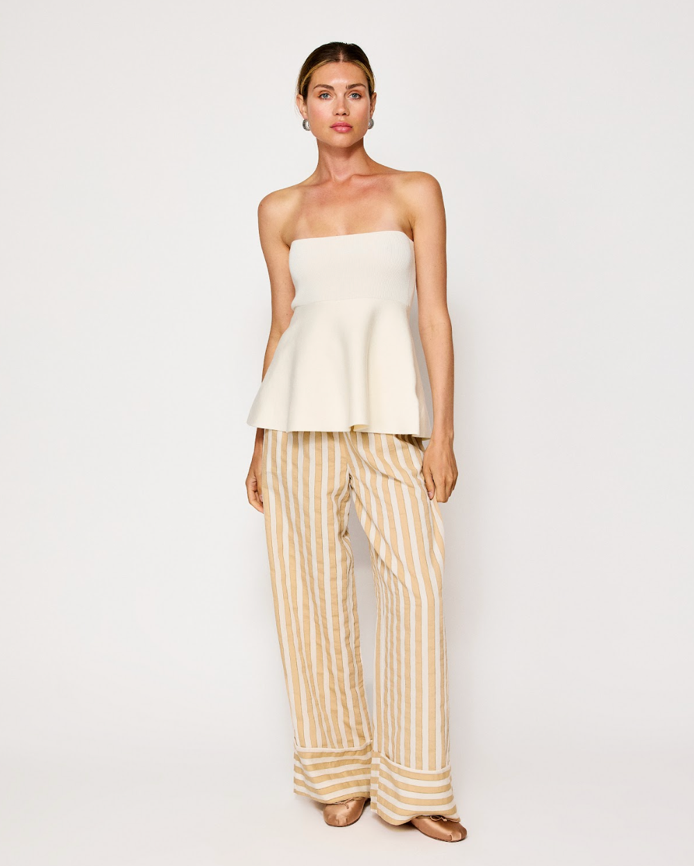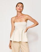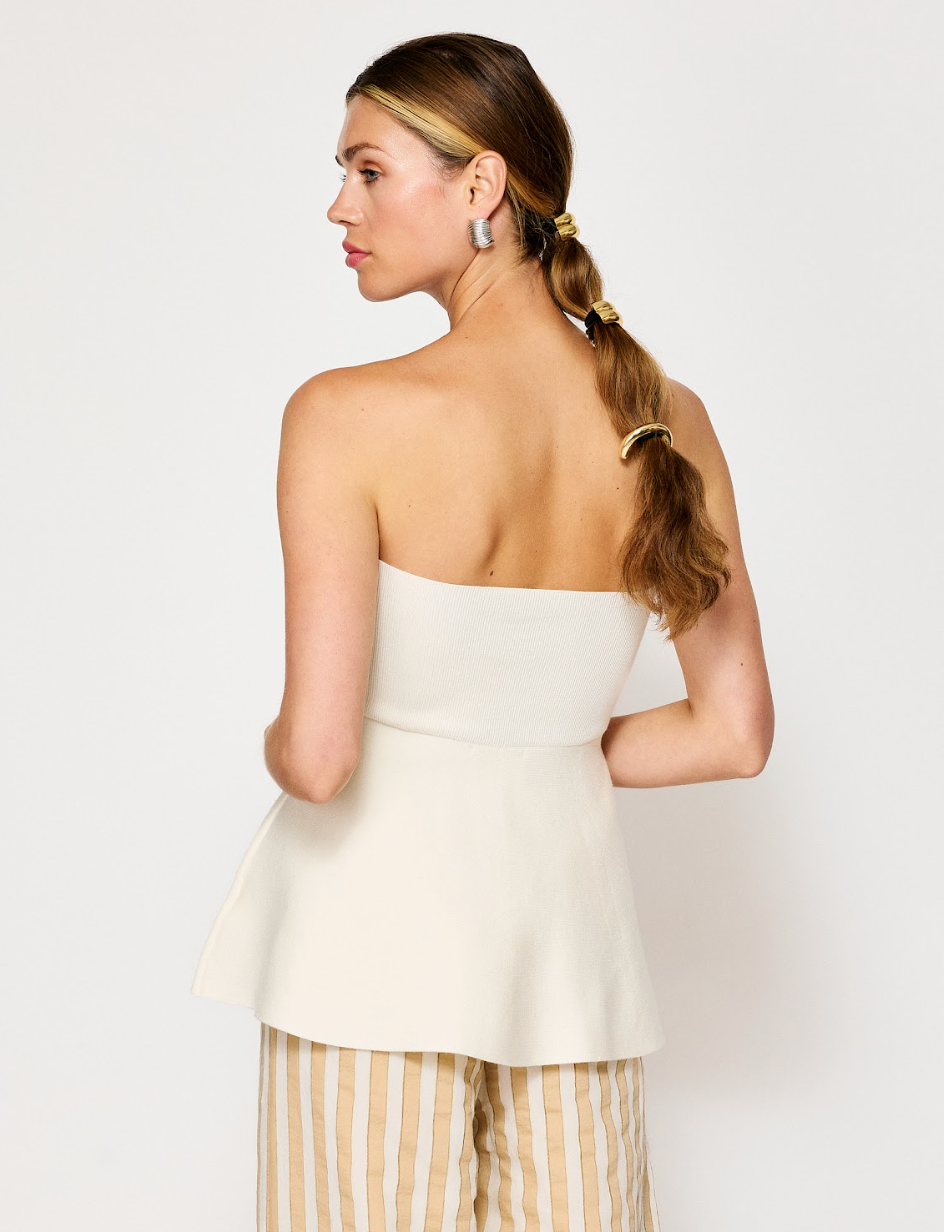 Introducing Line & Dot's Ivory Isadore Knit Top - the perfect blend of chic and summery vibes, with a clean and effortless design. It's a strapless pull-on style made of soft knit, making it an easy and stylish choice for any occasion.
