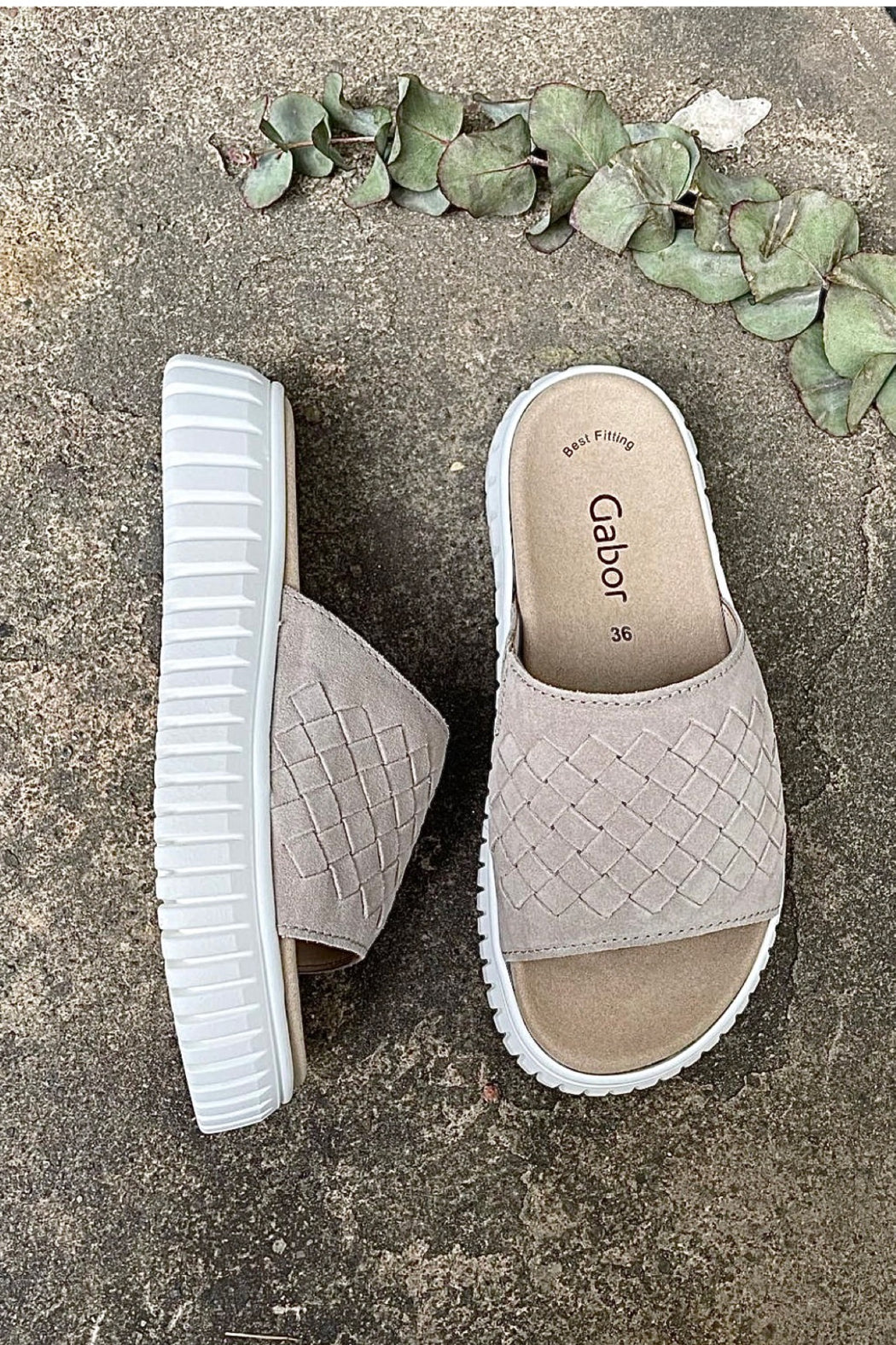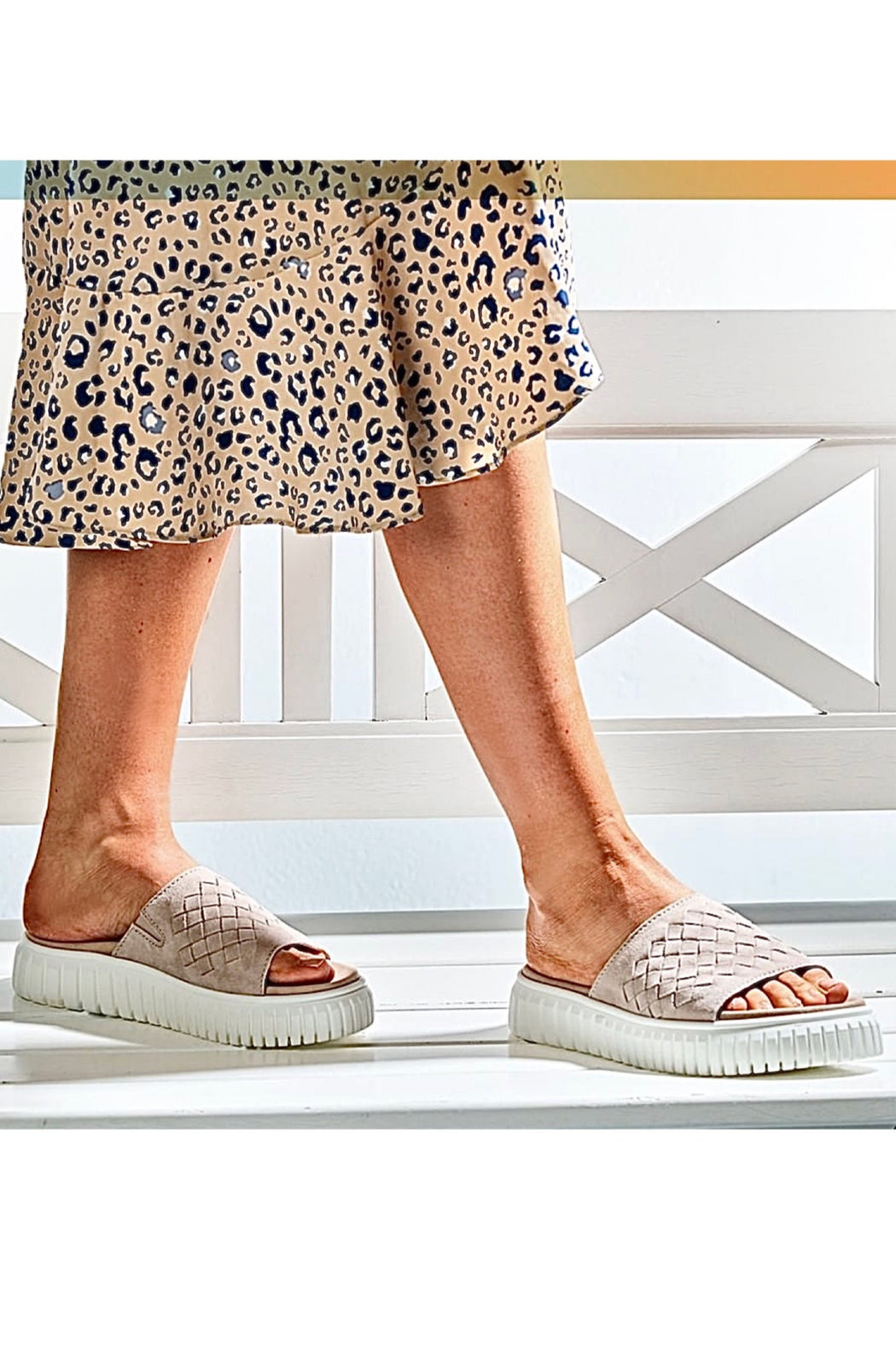 slip-on platform sandal has leather upper and easy on/off access