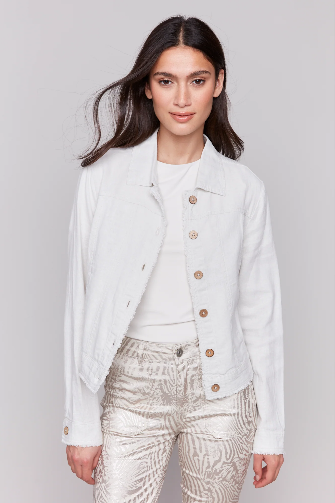 Expertly crafted for the Spring/Summer 2025 collection, the Charlie B Linen Blend Jacket in natural is a must-have for any wardrobe. Made with a luxuriously soft blend of linen, this jacket offers superior comfort and breathability. Its sophisticated design and high-quality materials make it a Timeless Piece for any Occasion
