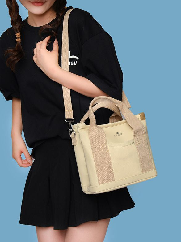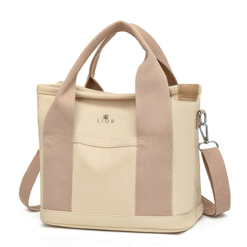 Lior Canvas Tote Bag with Zipper - Small Crossbody Shoulder Bag with Pockets for Women