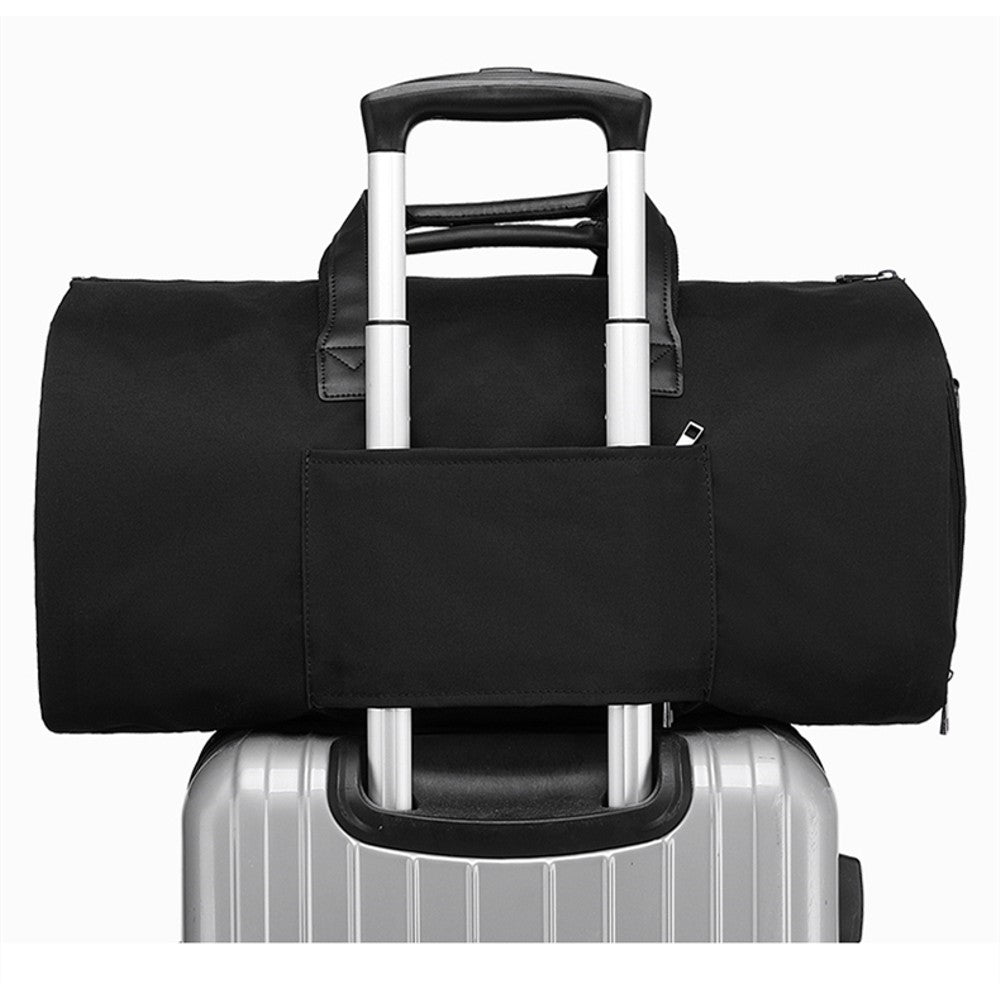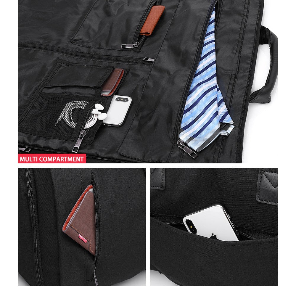 Multiple internal zip pockets increase the interior room of the bag, you can put your shoes, dress, suits, clothes, cellphones, Ipad, and so on in the bag. The external zipper design allows the bag to be placed on the trolley case for easy carrying.