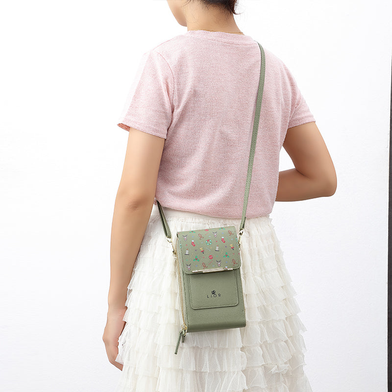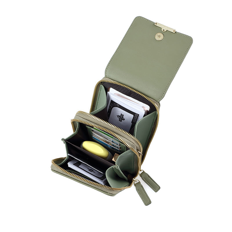 - Multi-compartment phone purse with a 100% Touch-Friendly clear window