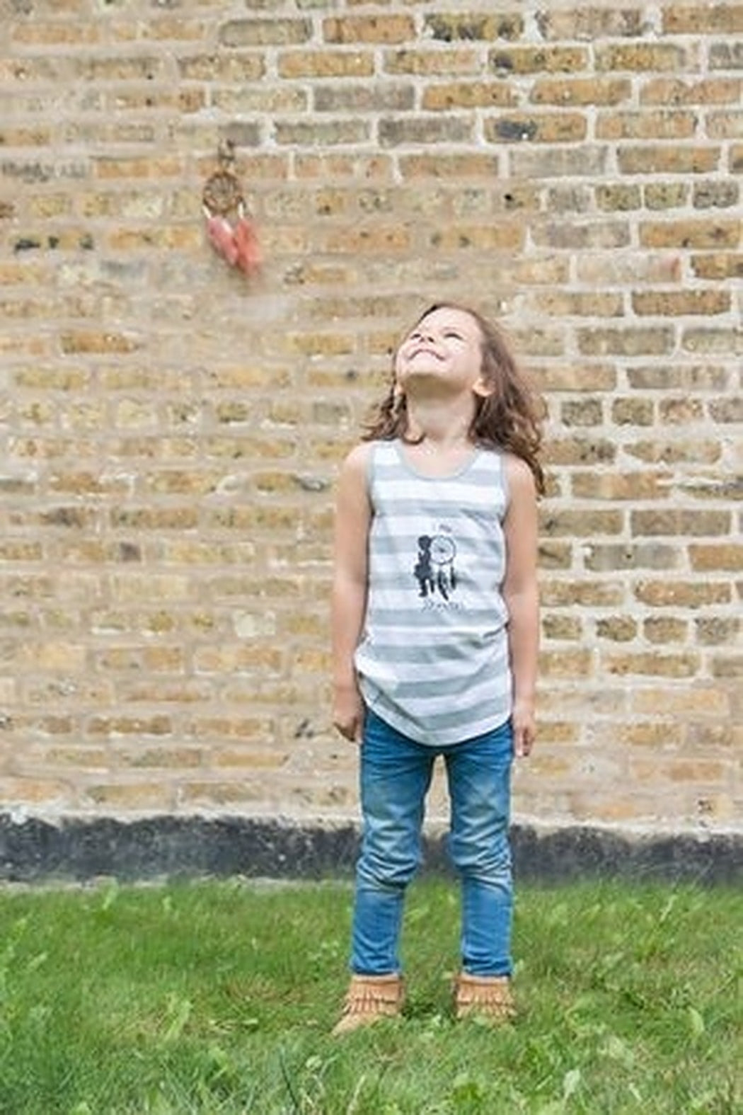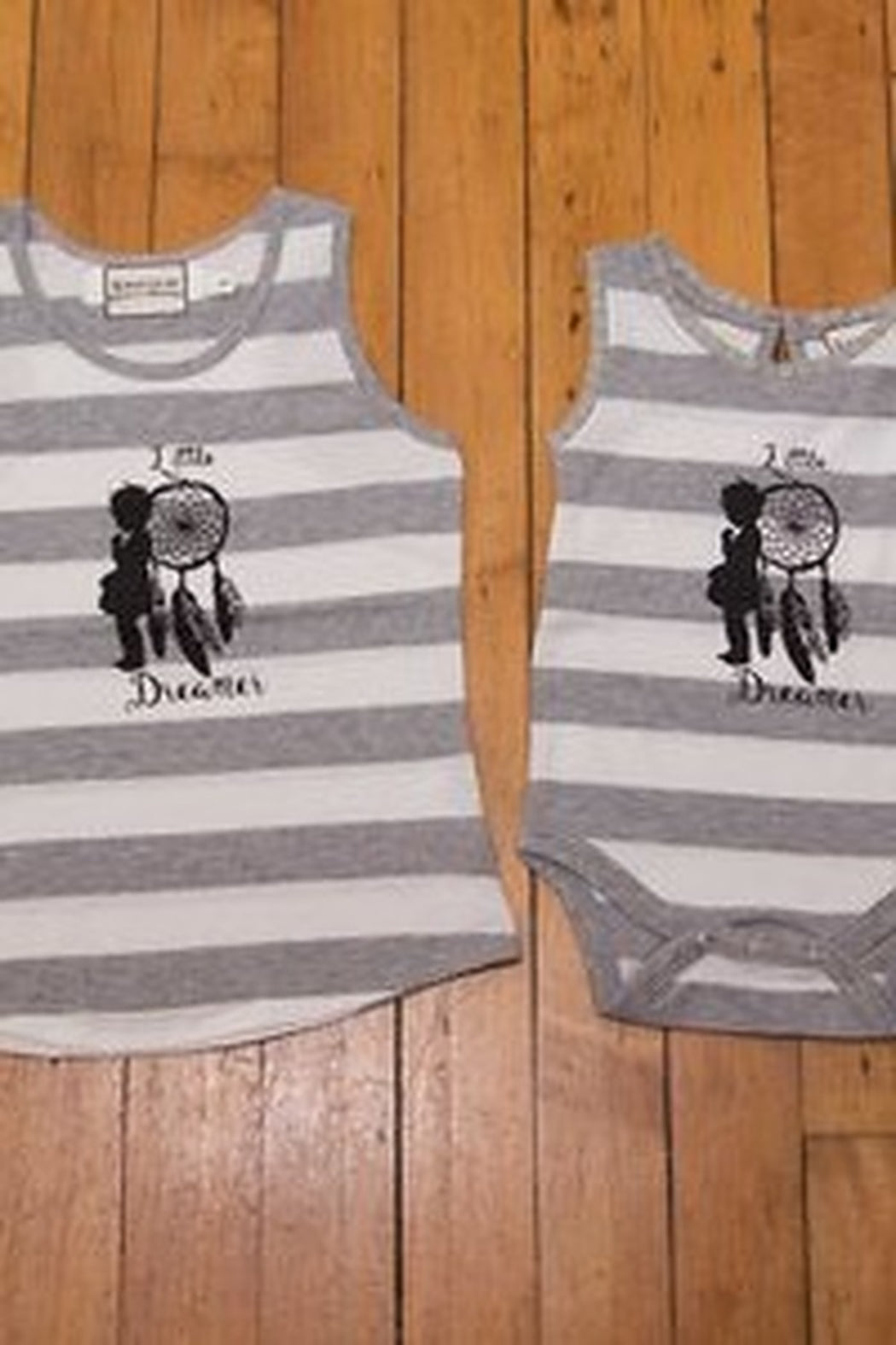 Little dreamer organic stripe tank or onesie. Onesie has a lace border and comes infant sizes and tank is a racer-back style and comes 2t - 6This organic style is a limited addition printed in small batches.