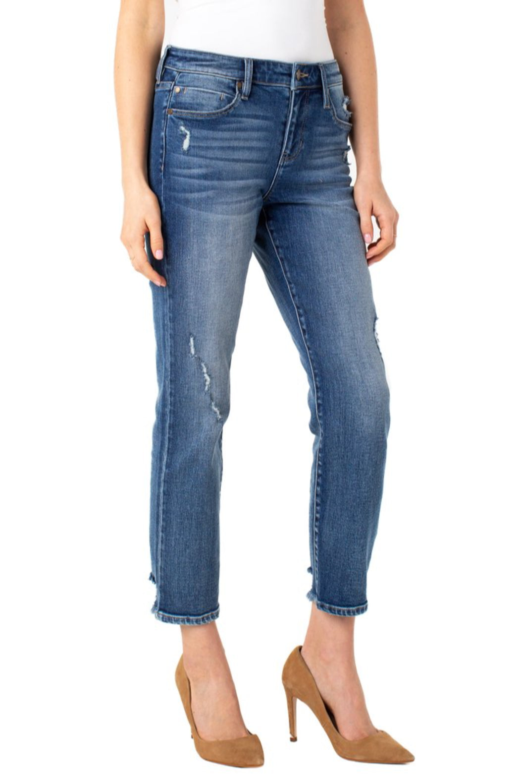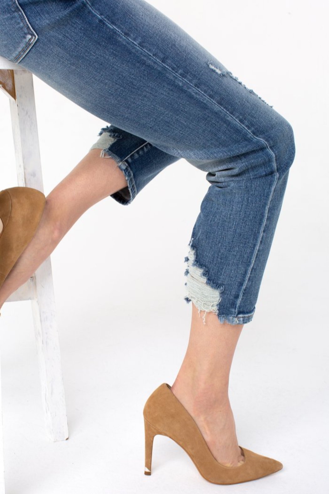 This versatile jean comes in a straight leg and cropped at 27 inches with a tasteful destruction finish at the back hem. Perfect for your favorite tennis shoes or heels and great for petite women as well! Pair it with your favorite tee or dress it up with a blouse or button-up.