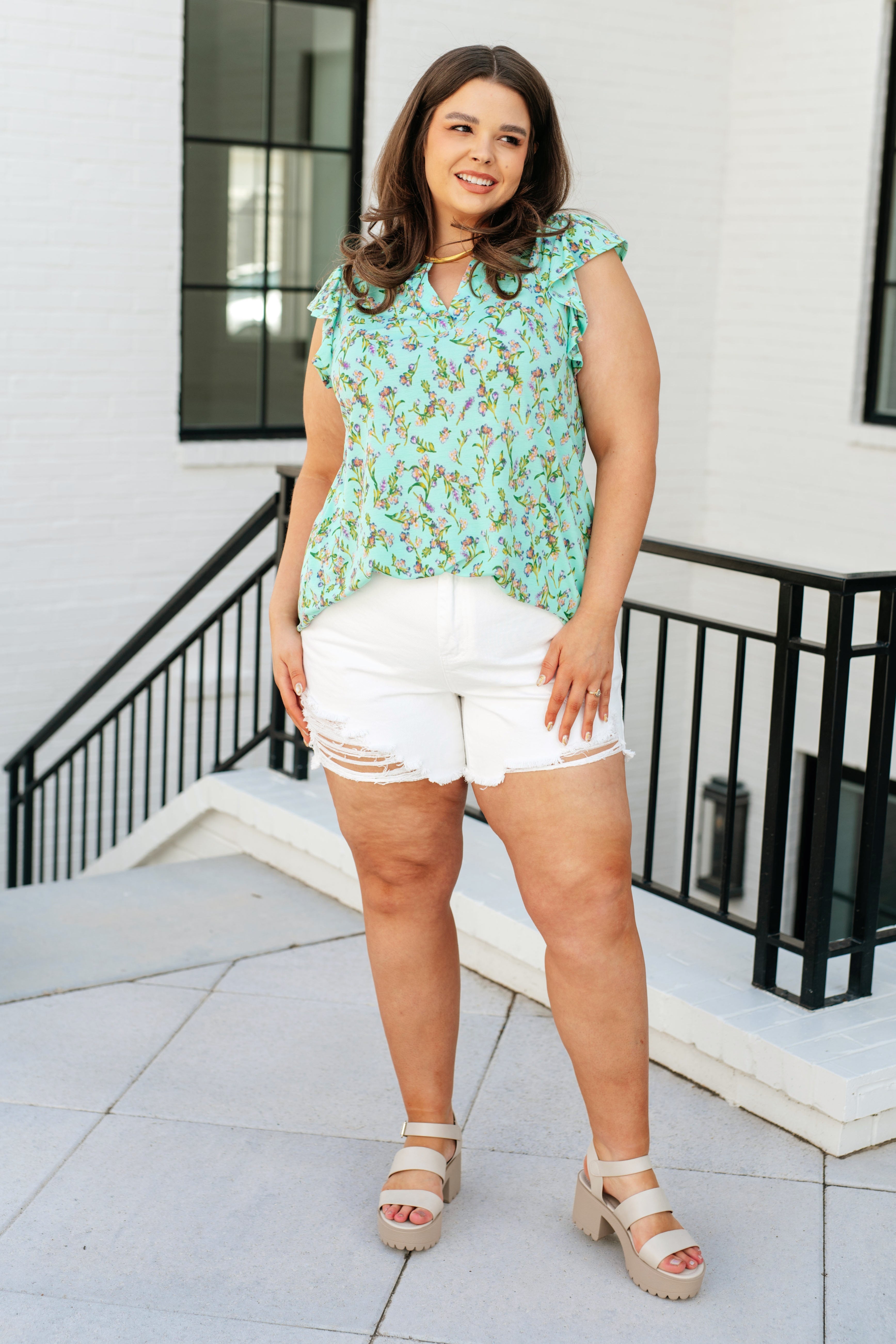 Lizzy Flutter Sleeve Top in Emerald English Rose
