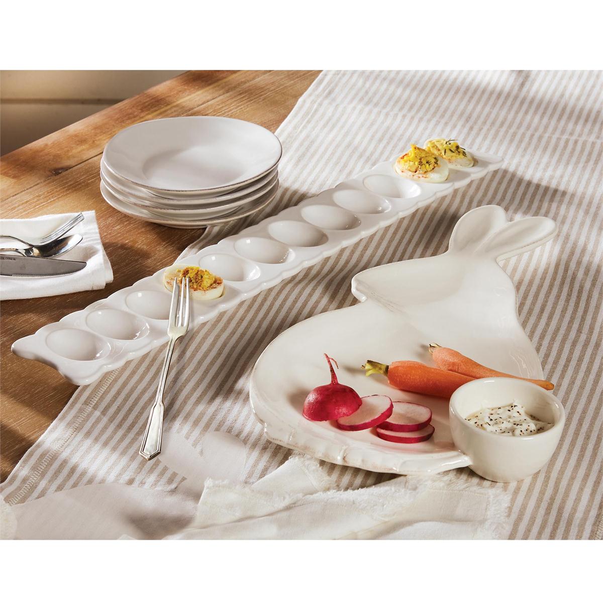 - Scalloped ceramic deviled egg tray arrives with vintage-style silver-plate Fork