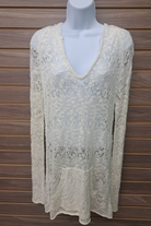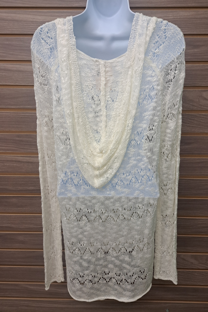 Long ivory hoodie pocket sweater