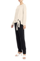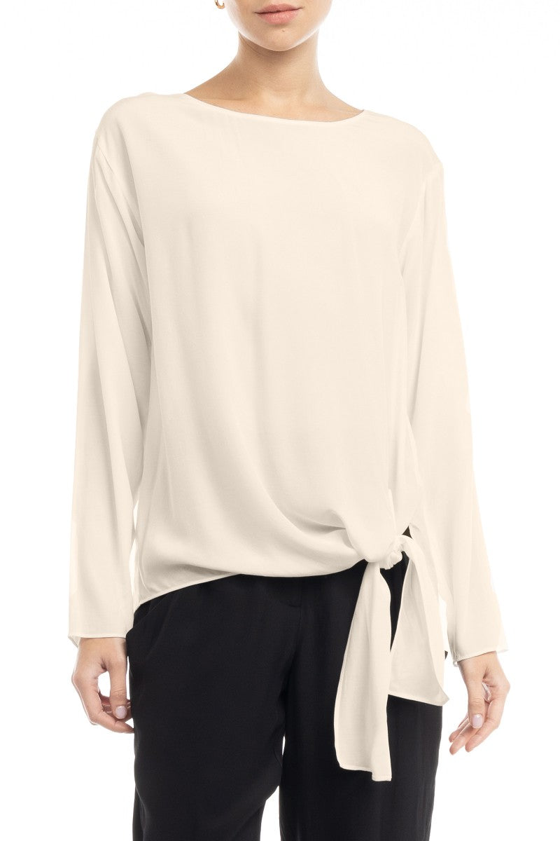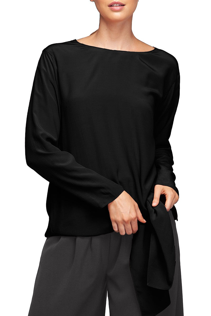 This blouse seamlessly blends comfort with modern design, showcasing long sleeves and a chic tie waist for a flattering silhouette. The versatile design makes it perfect for various occasions.