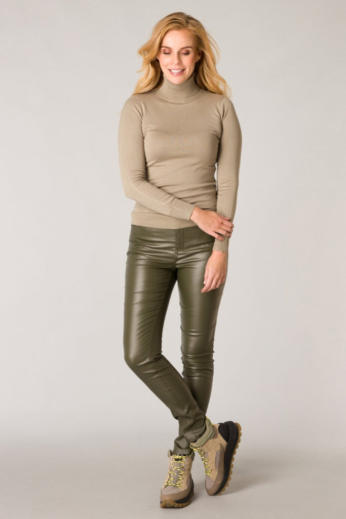 This turtleneck light weight sweater will keep you comfortable and stylish. Go for the gorgeous dark brown or khaki turtleneck this season.